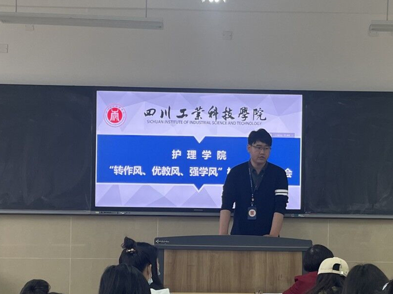为了更好地贯彻落实学校“转作风、优教风、强学风”文件精神,2022年3月11日中午,在10教511教师我院召开了“转作风、优教风、强学风”校风建设推进会。会议由教学办主任杨橙主持,护理学院全体教职工参加会议。本次会议以“加强‘转作风、优教风、强学风’校风建设”为主题,传达了学校教学会议精神,对学院内部问题提出了整改建议。