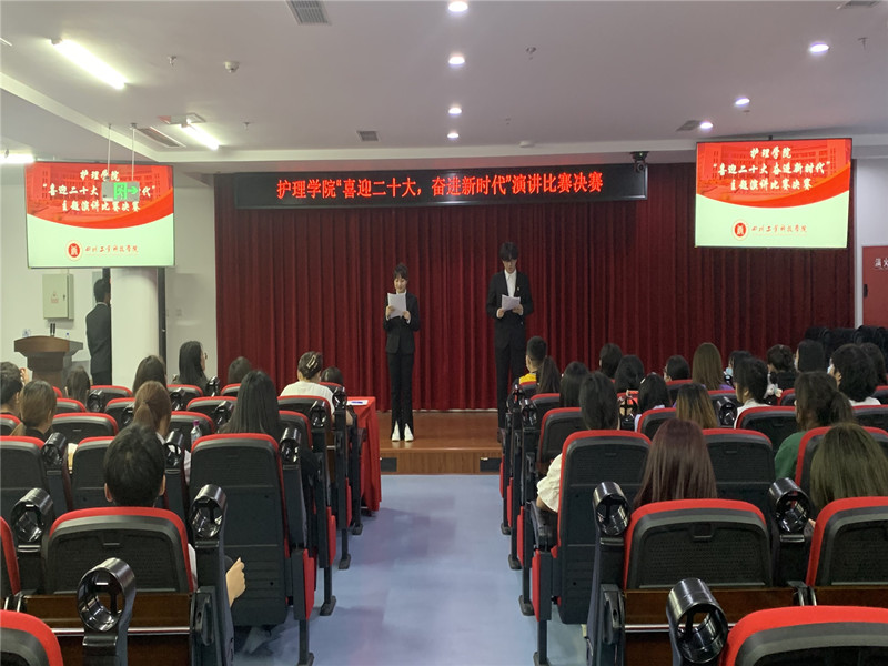 4月27日晚,护理学院在东区图书馆301会议室举办“喜迎二十大,奋进新时代”演讲比赛决赛活动。活动由王子悦、张靖主持,比赛由副院长刘碧琼、学工办主任李丹、团总支书记潘城妹、蒋梦蝶老师、刘高老师担任评委。