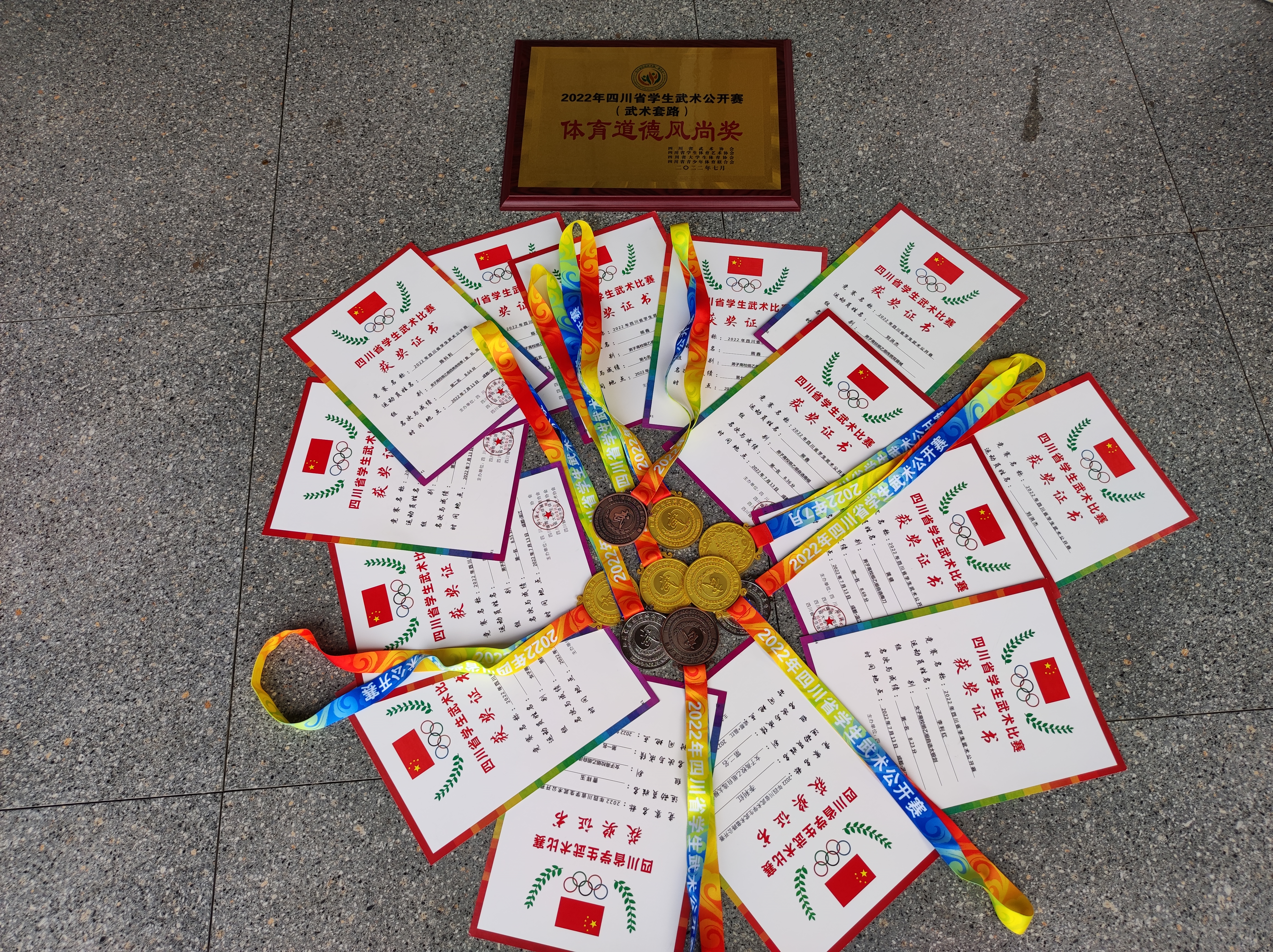 四川省学生武术公开赛于2022年7月11日—13日在温江举行,我校武术队在教练员雷耀方、李青、于淼老师的指导下,经过一个月的集训,7名队员在比赛中成绩突出,获得了5个第一名、2个第二名、2个第三名的好成绩。