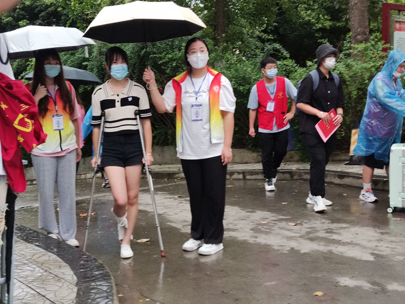 志愿者们分工明确、有条不紊地迎接新同学,他们为新生带路、拉行李箱、指引办理入学手续、答疑解惑,他们不停穿梭在人群中,用最独特的方式展示最美的自己。