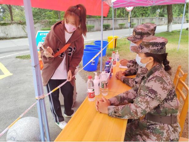 当下疫情防控工作仍不容松懈,按照疫情防控要求,新生们入校前需出示24小时内核酸检测证明、健康码、通信大数据行程卡,待工作人员检查通过后,方可进行体温测量及消毒工作,以确保防疫工作落实到位。