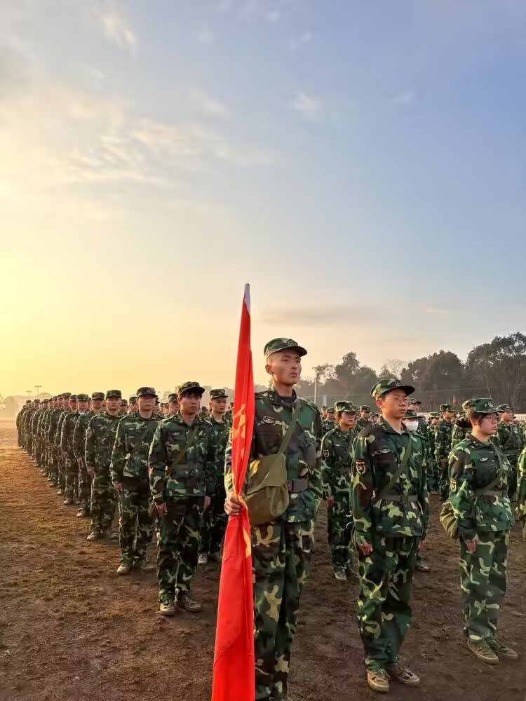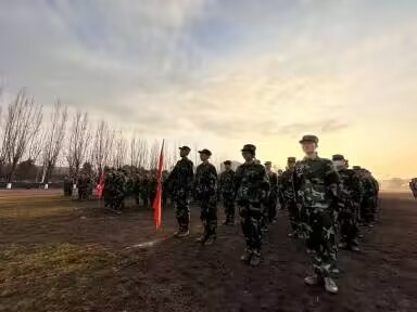 晨光熹微,连旗飘扬,出早操时恰能望见红日初升。一身身迷彩服整齐穿戴,一双双眼睛目光炯炯。阳光扫过迷彩帽下年轻的脸庞,为新一天军训拉开帷幕。2月19日军训的第八天,同学们在之前的军训中略显疲惫,但同学们的心依然随着连旗高高飘扬。