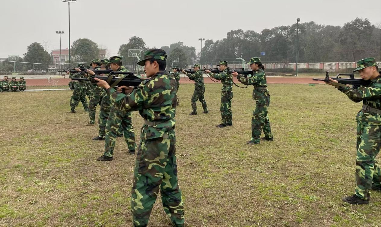 当分列式评比结束,各个训练场上还有这样一群人,他们各持不一样的武器 练习着不一样的招数,他们要在最后一天的结训带来精彩的展示。2月17日,四川工业科技学院体育健康学院于田径场正式开始了新生军训表演大队的训练。