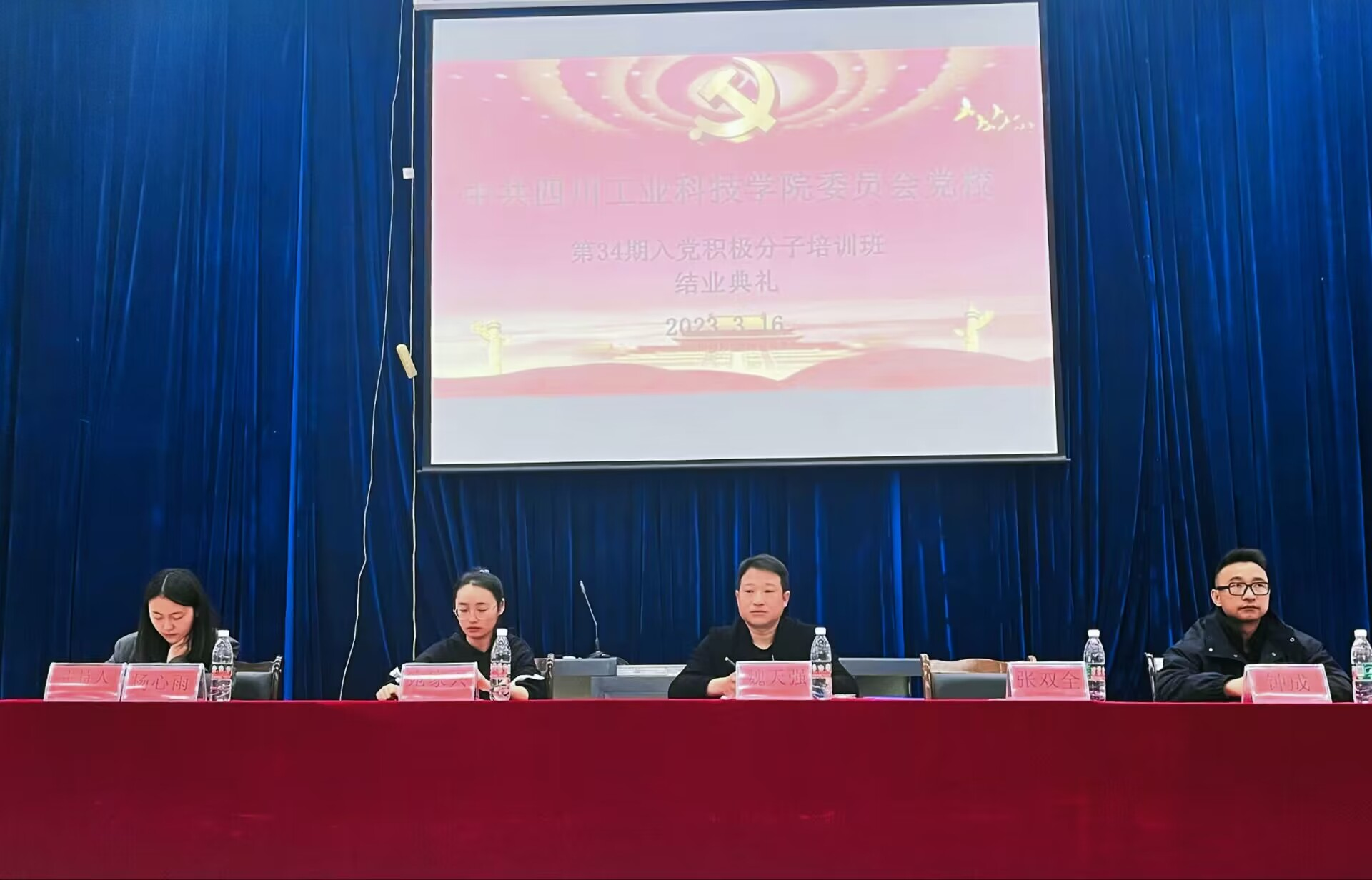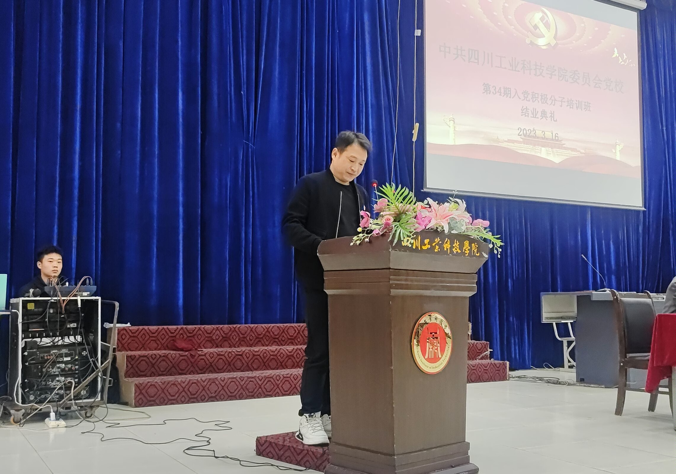 3月16日下午,四川工业科技学院体育与健康学院党校第三十四期入党积极分子培训班结业典礼在东阶梯举行。我院党总支副书记魏天强、学工办副主任张双全等领导及全体34期入党积极分子参加结业式。典礼由社体系党支部组织委员兼纪检委员杨心雨老师主持。
