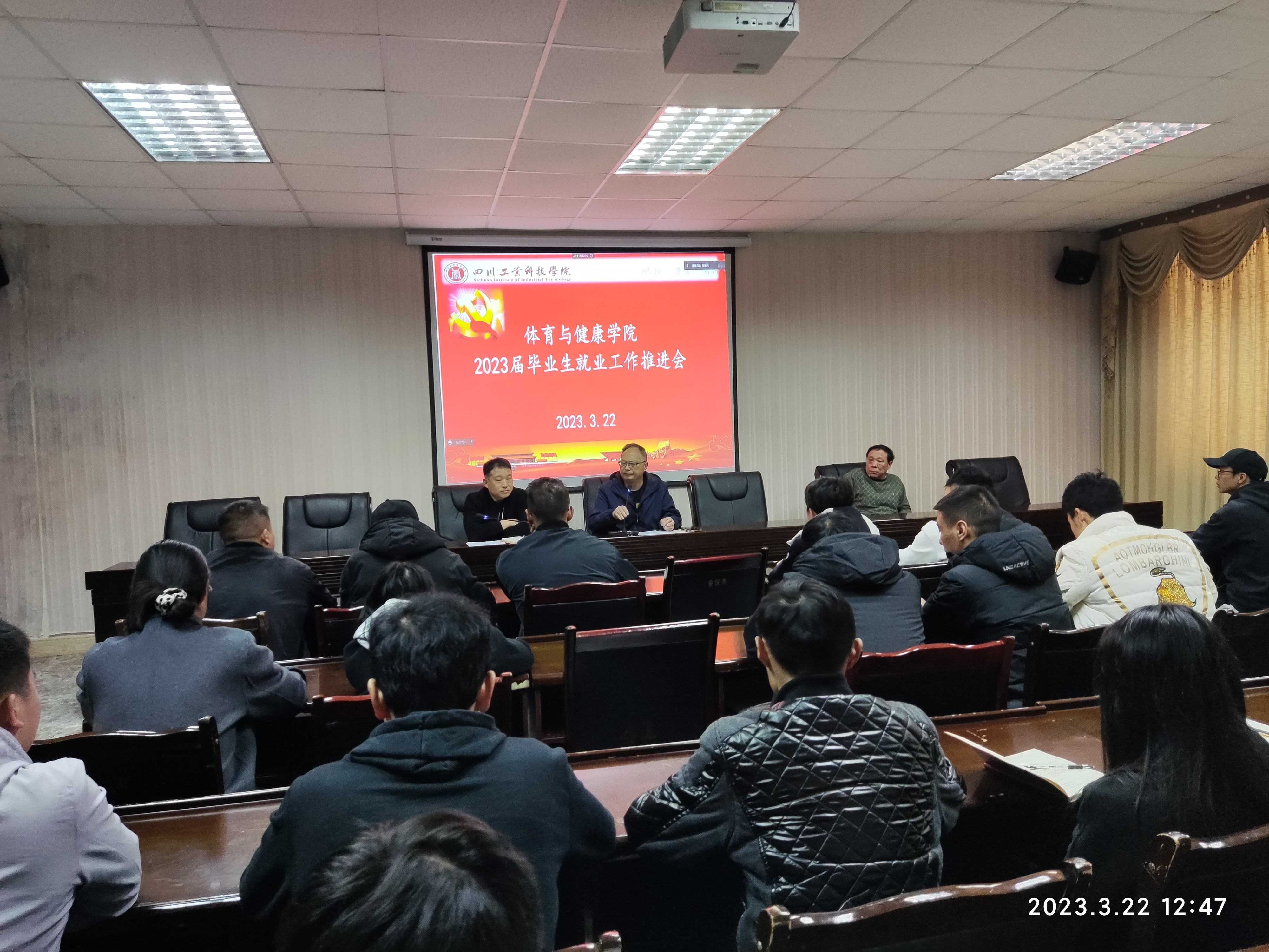 3月22日中午,体育与健康学院召开体育与健康学院2023届毕业生就业工作推进会,会场设置在绵竹校区,绵竹校区的全体教职工现场参会,陆春桃院长、刘琼碧副院长和李双晶副书记及罗江校区全体老师线上参会。