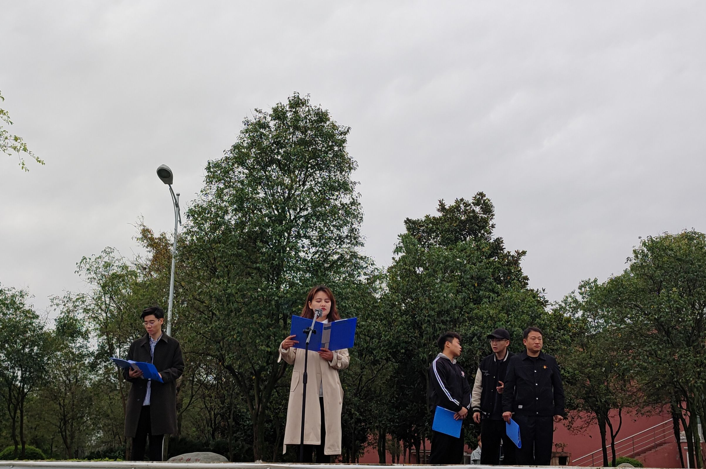 4月6日上午,四川工业科技体育与健康学院全体师生齐聚操场,举行四月升旗仪式。我院党总支副书记魏天强、学工办主任张双全等领导和全校师生参加此次升旗仪式。仪式由辅导员王博睿主持。