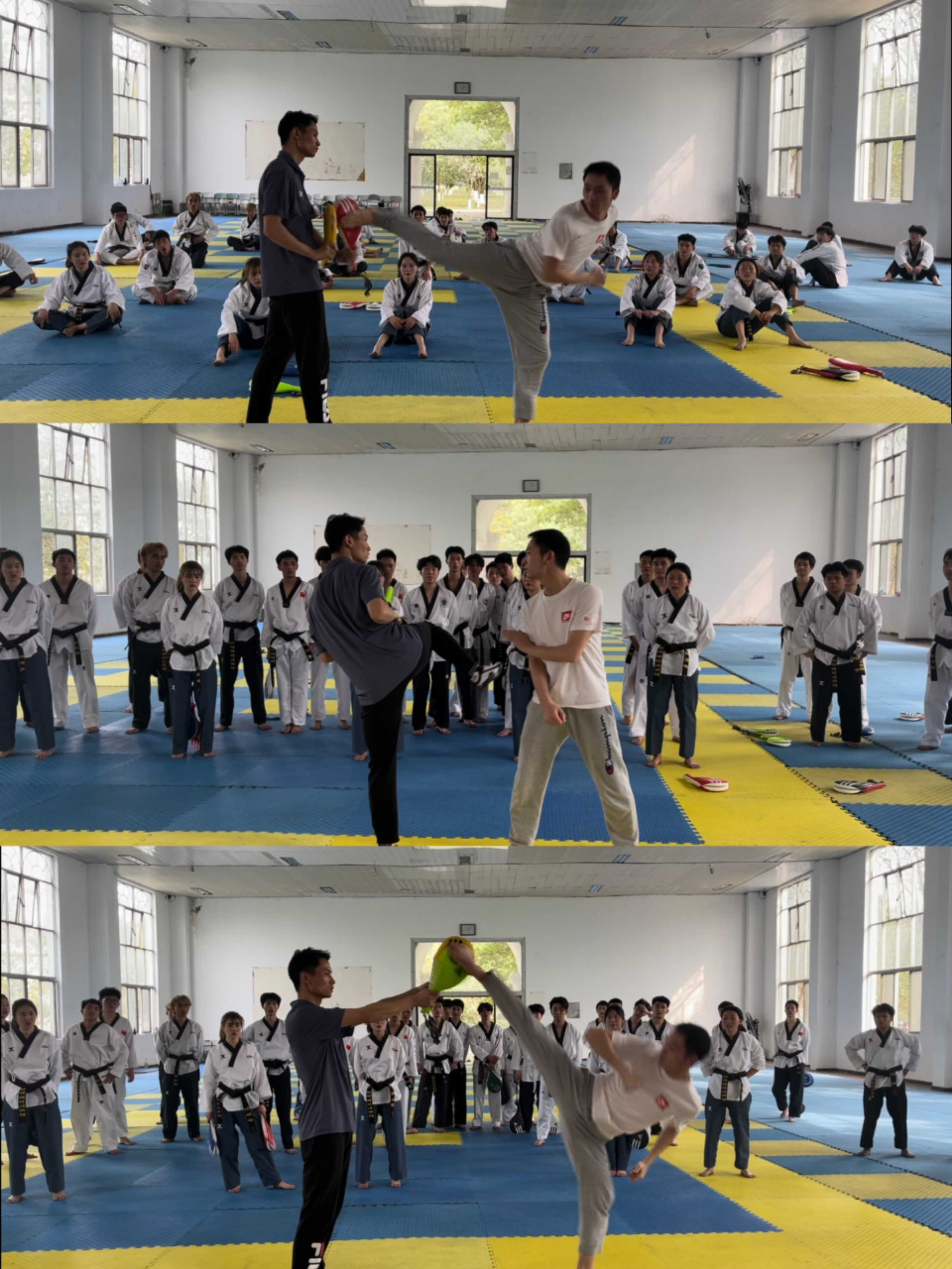 2023年4月11日,全国跆拳道冠军李再超老师与吉滔老师应邀来到四川工业科技学院,为我院社会体育系跆拳道专项班的同学们进行了一场精彩专业的跆拳道竞技项目专业技术指导。本次教学两位老师为川工科学子讲解了许多简明实用的竞技技巧,提升了同学们对于跆拳道竞赛对抗的理解和认知,同时也丰富了同学对于跆拳道竞技方面的经验。让同学们受益匪浅。
