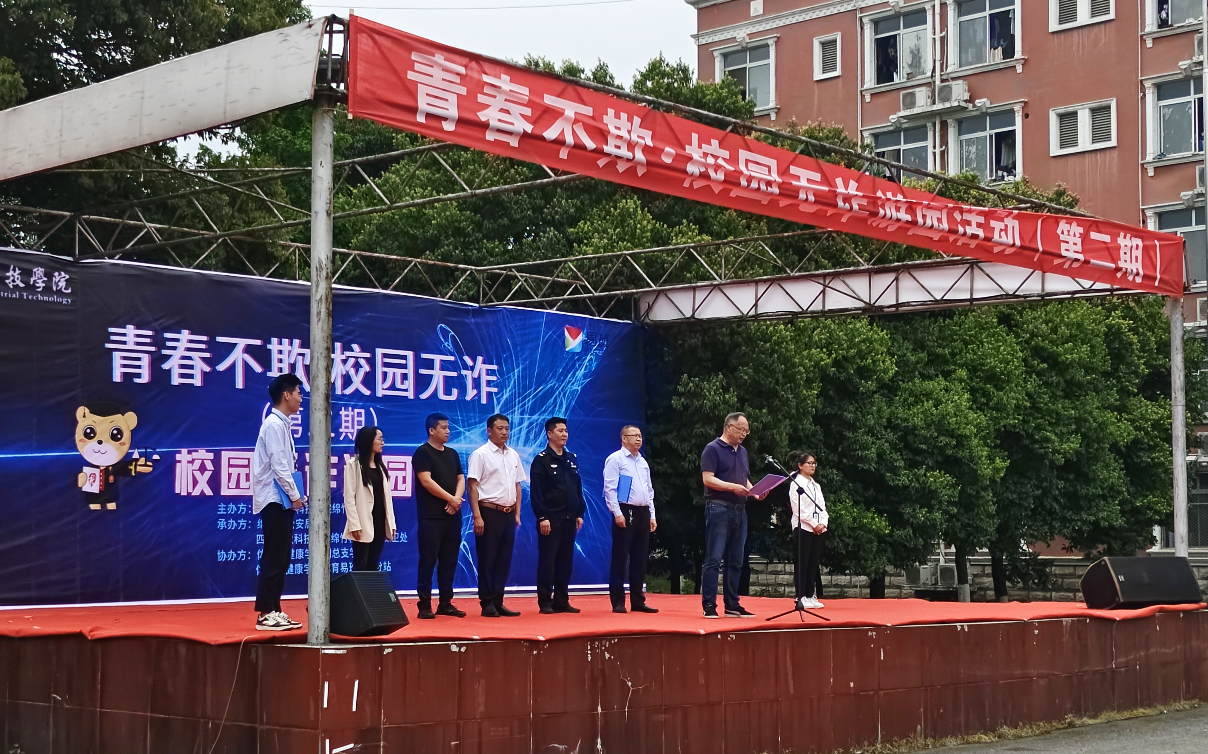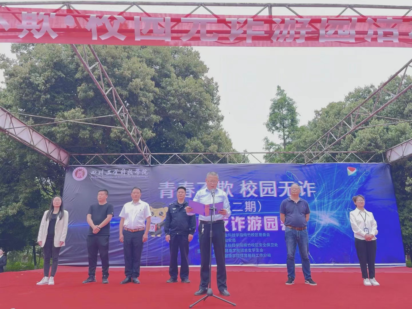 为进一步加强防范校园网络诈骗宣传力度,提高学生对各类网络诈骗方式的鉴别能力和自我防范意识,4月27日,四川工业科技学院绵竹校区于学院公寓广场开展第二期“青春无期,校园无诈”为主题的游园活动。本次游园活动由体育与健康学院绵竹校区管委会主办、体育与健康学院团总支学生会承办。四川工业科技学院副校长黄斯欣、体育与健康学院院长邓跃宁等领导出席本次活动,本次活动由体育与健康学院辅导员王博睿主持。