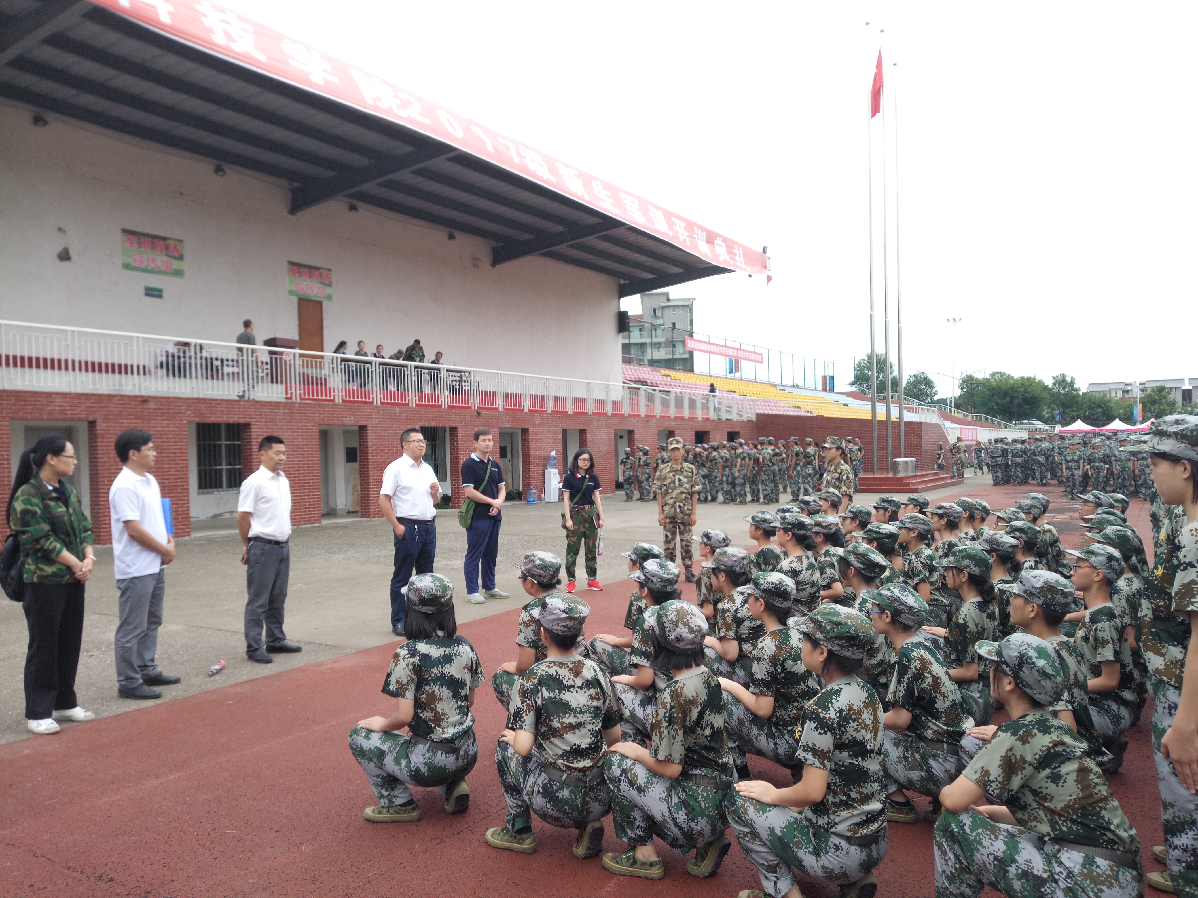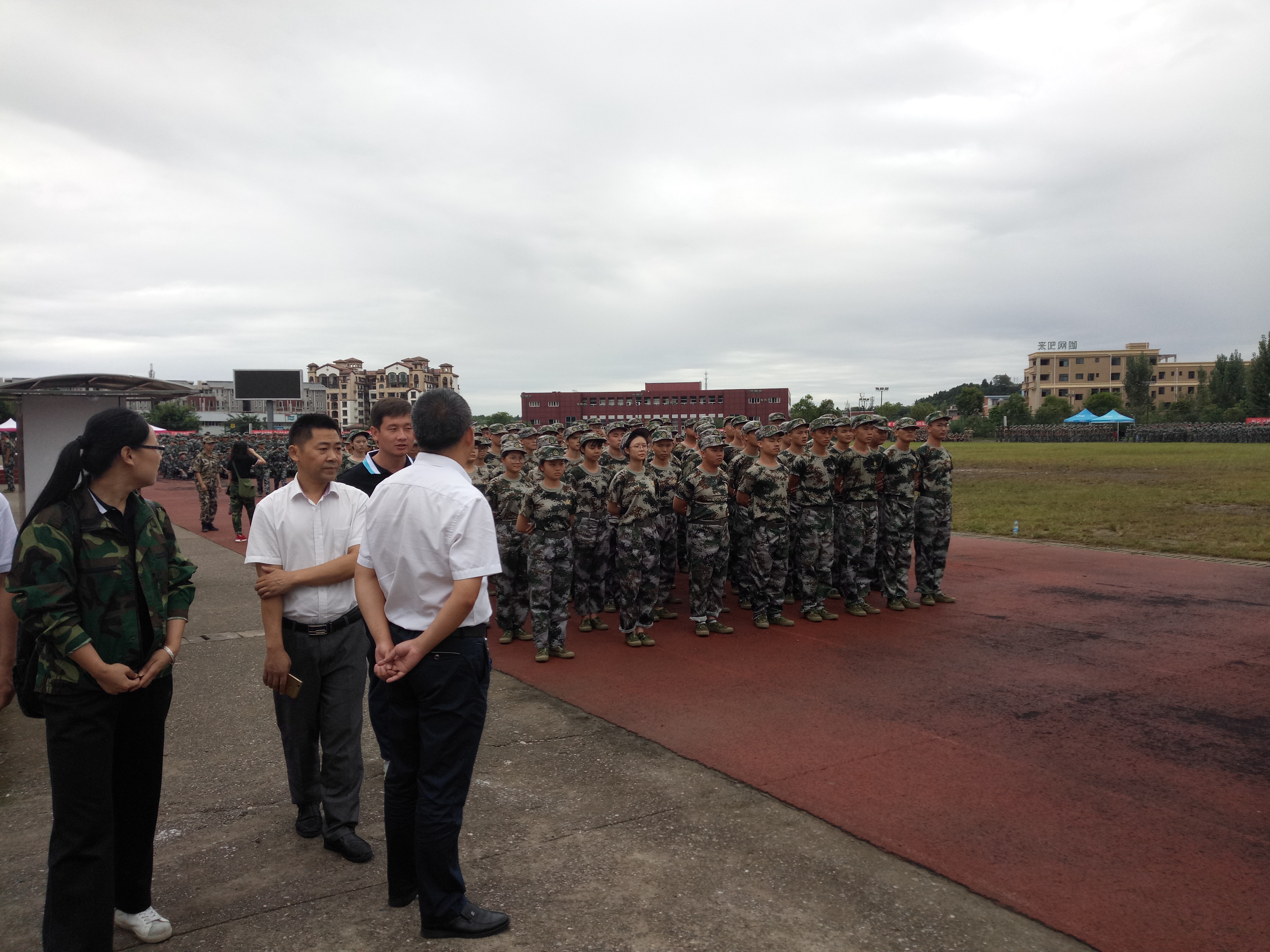 8月30日上午10:30,校领导黄斯欣、院党支部书记龙厚彦看望正在参加军训的2017级新生,学工办、军训负责人随行。