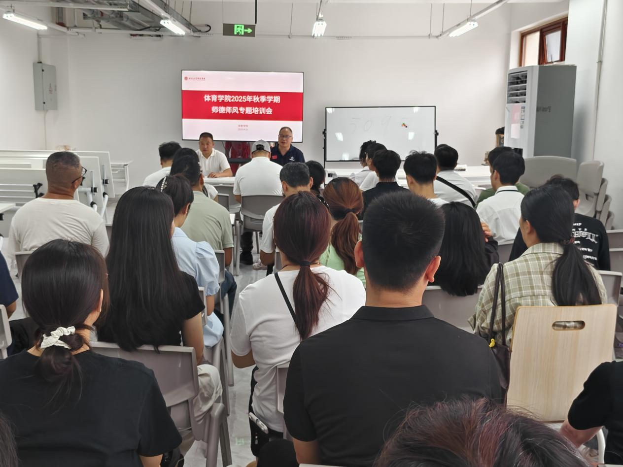 此次培训内容涵盖国家宏观战略和具体操作细则,通过系统学习,全院教师进一步明确了行为规范和责任要求。培训统一了思想,提高了认识,为新学期落实立德树人根本任务、推动学院高质量发展奠定了坚实基础。学院将持续完善师德师风建设长效机制,努力打造高素质专业化体育教师队伍。