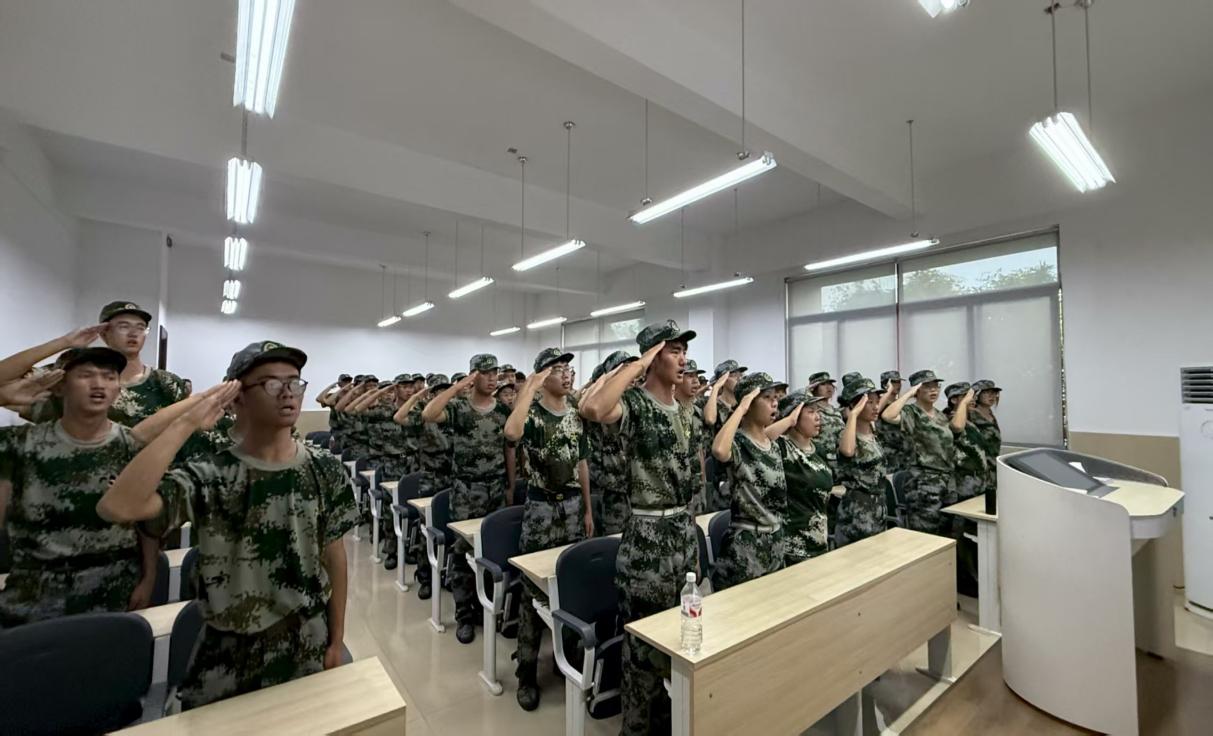 阅兵仪式开始,国歌奏响时,身着军训服装的新生们肃立敬礼,高唱国歌,神情庄重而自豪。其他学生也在教室专注观看直播,为受阅部队整齐的步伐和先进的武器装备所震撼,不时发出赞叹之声,现场洋溢着浓厚的爱国热情。