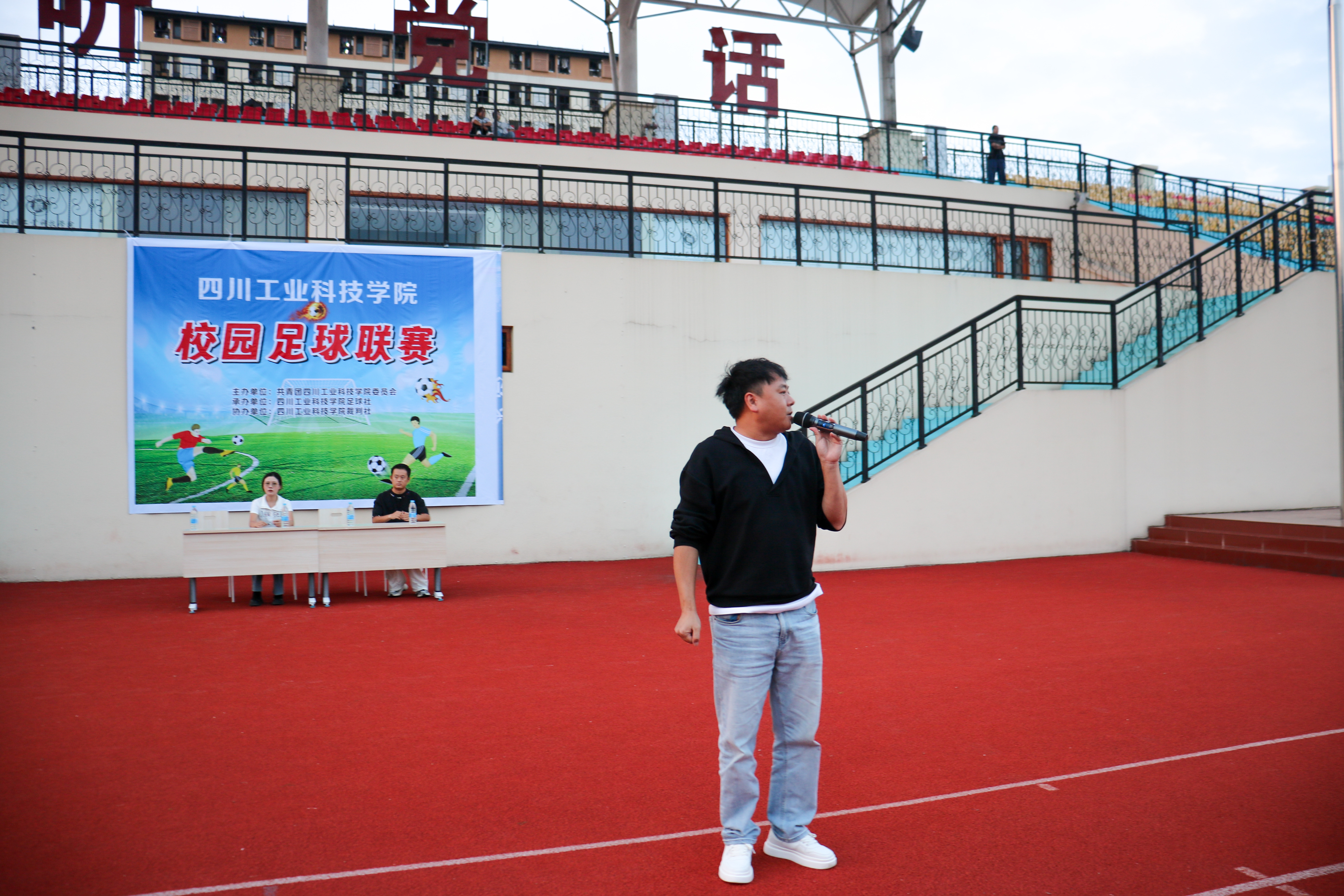 近日,四川工业科技学院第四届“迎新杯”校园足球联赛在龑江校区足球场正式开幕。刘纪斌、李卓峻、宋洁玉等教师代表与来自各年级的17支代表队、近400名运动员共同参加开幕式。