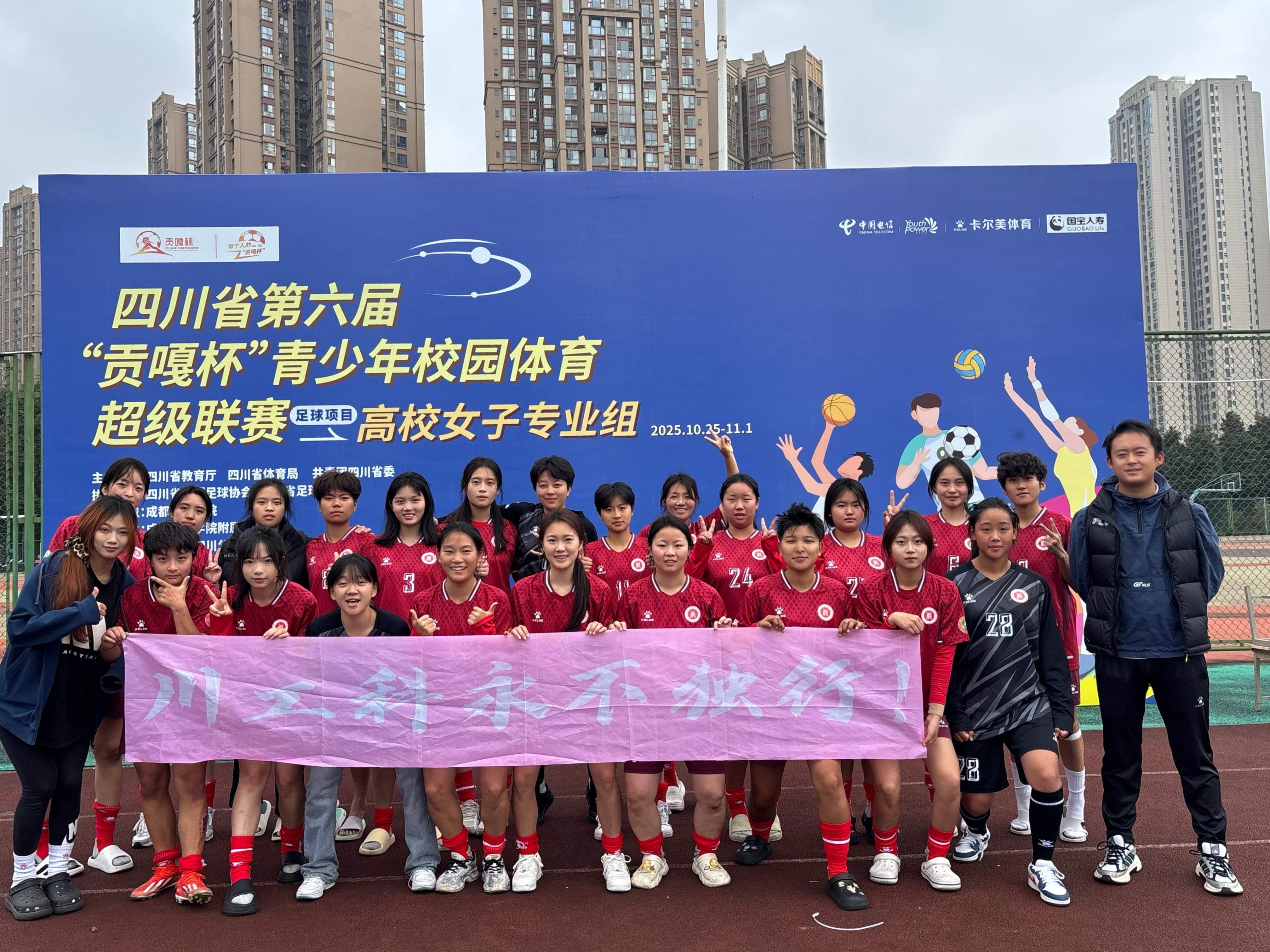11月2日,四川省第六届“贡嘎杯”青少年校园体育超级联赛女子足球交叉淘汰赛在成都师范学院落幕。学校女子足球队在比赛中奋勇拼搏,虽以0:1惜败对手,止步淘汰赛,但仍以小组第三名的成绩创下队史最佳战绩,展现出顽强拼搏、永不言弃的体育精神。