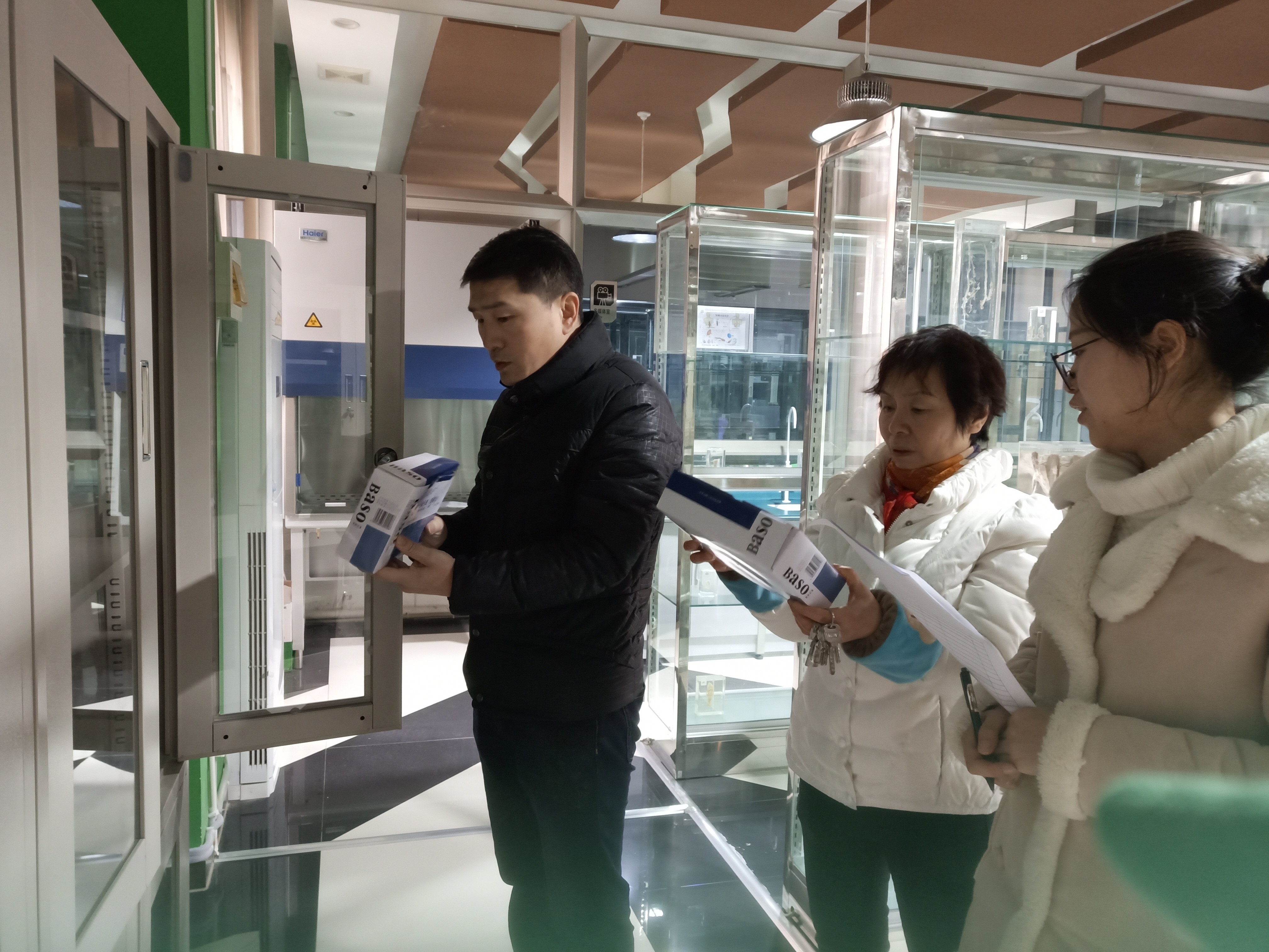 1月8日下午,要求分管实验室的领导和教学秘书以及任课老师再次对照标准进行检查,对实验实训中心的环境清洁卫生、防火防盗、设备设施、化学试剂、水电气等工作进行了全面大检查,未发现问题。同时特邀了教务处孟庆旭副主任到现场指导,孟副主任强调,一是制度一定要上墙,每次开展实验课之前学生要签定《承诺书》;二是物品和药品要上锁,专人保管;三是加强废水和废品的处理,避免有害有毒物品污染环境。