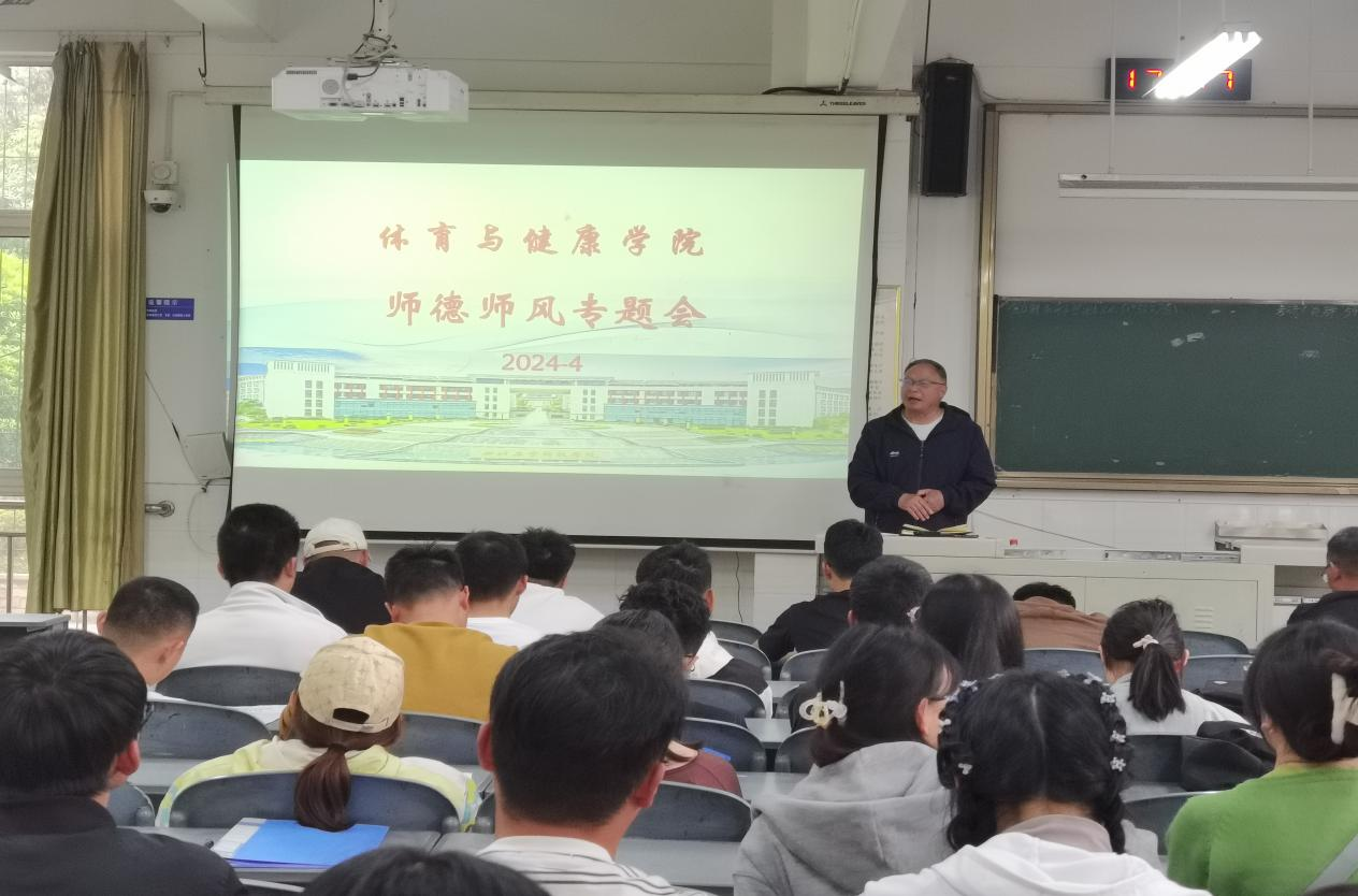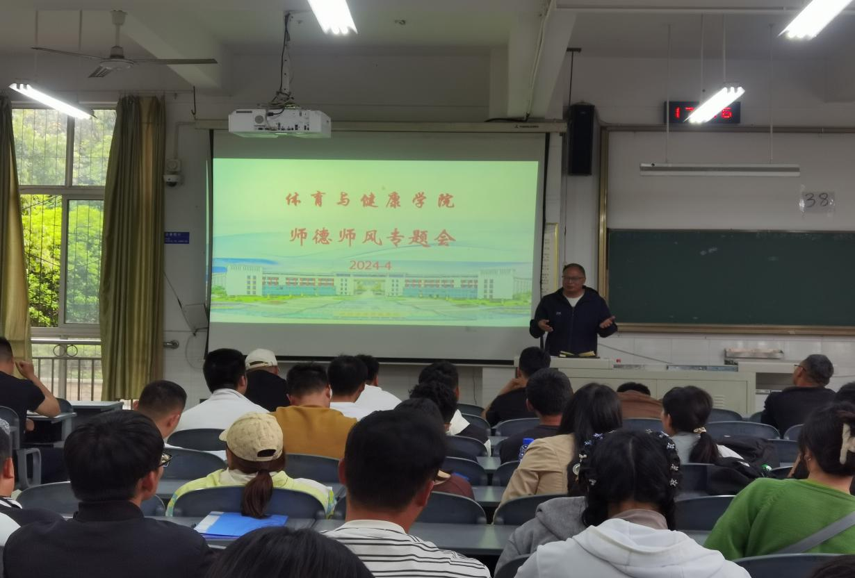 为切实加强教师师德师风建设,规范教师职业行为。2024年4月11日下午5点10分,体育与健康学院于毓秀楼101教室顺利召开师德师风专题会,会议由体育与健康学院院长邓跃宁主持,体育专业全体教职工参与此次会议。