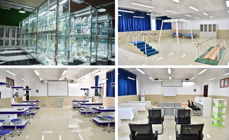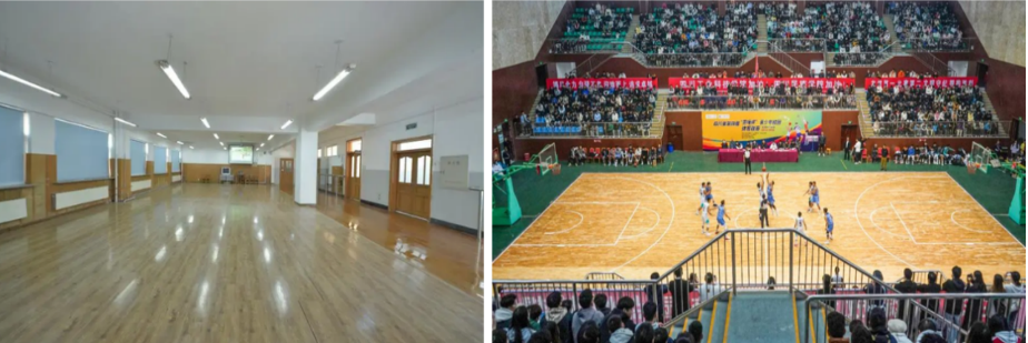 体育学院有标准塑胶田径场 4个、游泳池 2 个、配套建设有篮球、排球、网球等户外运动场共110420㎡,生均3.7㎡;有体育馆、专用训练馆(室、厅)、风雨操场等室内运动场16626.88㎡,生均0.5㎡;场馆总面积125946.88㎡,生均4.2㎡。