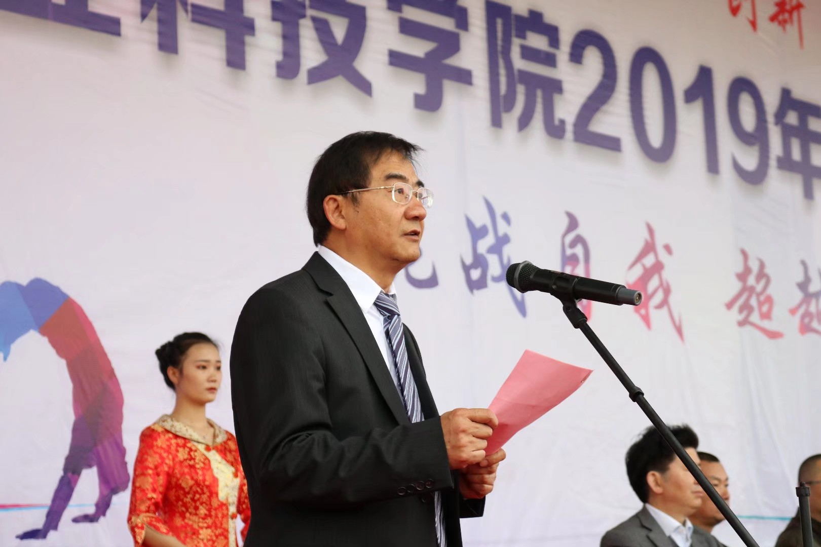 校长张小南致开幕词。他首先对运动员、裁判员和全体老师同学表达了亲切的问候,并详细总结了历年来学校在体育事业方面取得的优异成绩并希望同学们谨记“健康、和谐、创新、发展”的运动主题,在运动中挥洒汗水收获喜悦,争取让体育事业再创佳绩,并预祝运动会圆满成功。最后,由党委书记魏崛宣布运动会正式开幕,此时台下响起了雷鸣般的掌声。而后的啦啦操更是精彩万分,动感而又可爱的花环舞,热情似火的健美操还有那富有民族特色的歌舞表演将现场的气氛推向了高潮,动感与柔美的精彩结合,流行与传统的完美碰撞,点燃了同学们的激情,对运动会充满了期待。开幕式在同学们的一阵阵掌声中落下了帷幕。各项比赛正式开始。
