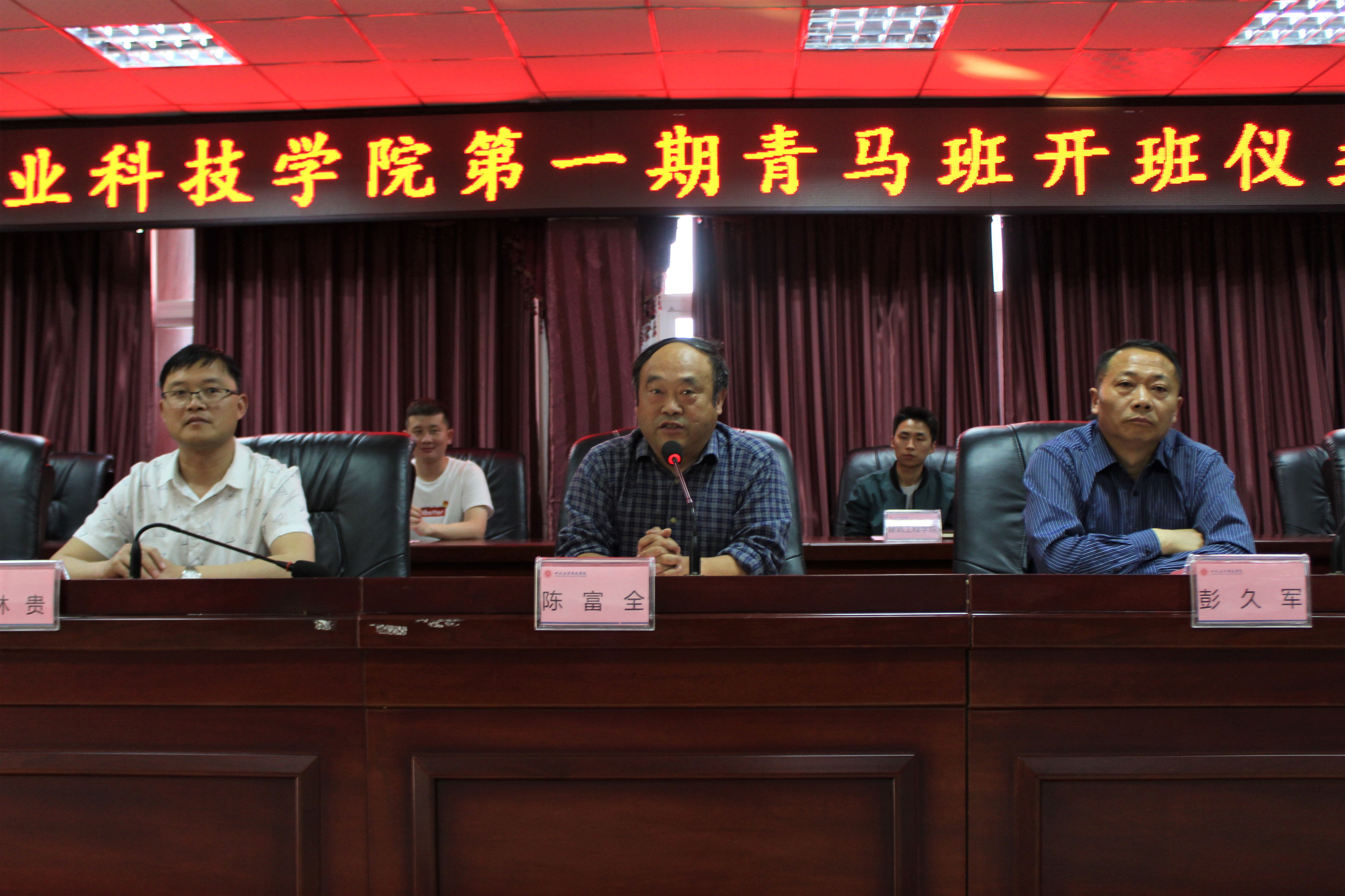宣誓仪式结束后,人事处处长陈富全发表致辞。他对青马班开班表示热烈的祝贺并指出青马班的开班在大学生中是重要的也是必须的,作为当代大学生骨干,必须全面把握马克思理论知识,从德智体美劳全面发展,让个人的努力与国家的命运相结合来实现自身价值的最大化;要用发展的眼光看待马克思主义,学习理论原著并且与实践相结合。