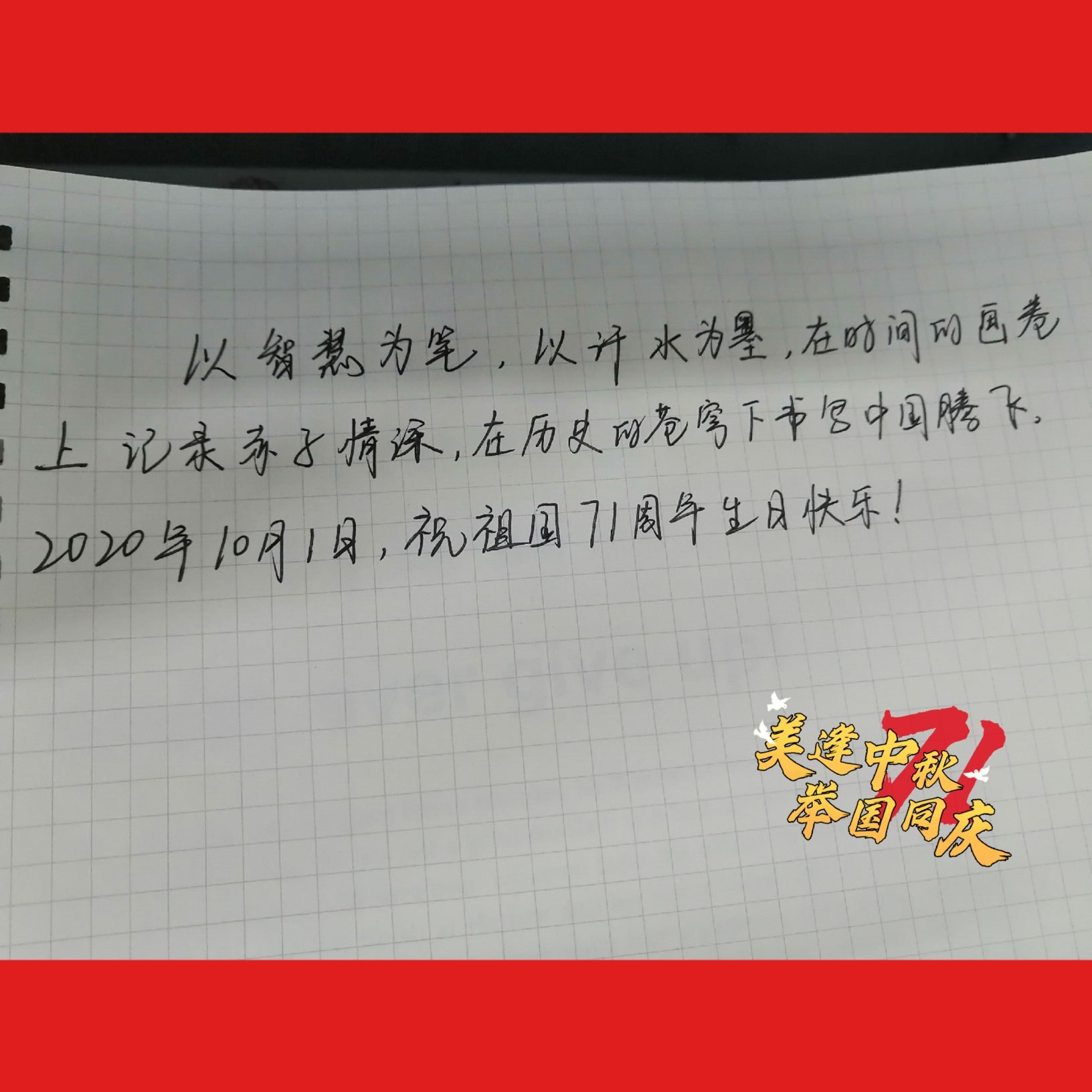 三、开展“我为祖国写祝福”活动,通过手抄报、展板、手写祝福语等形式对祖国进行祝福。