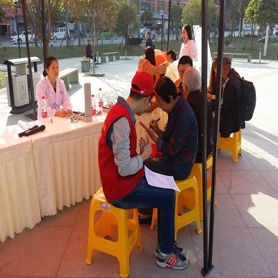 大家与老人共话家常,初步了解老人们的需求,为以后更好地关爱老人做一个初步的调查。颐伦养老中心的爱心天使为我们的老爷爷老奶奶免费测血压,在与老人们轻声交谈之中透露着对他们身体健康的关心。
