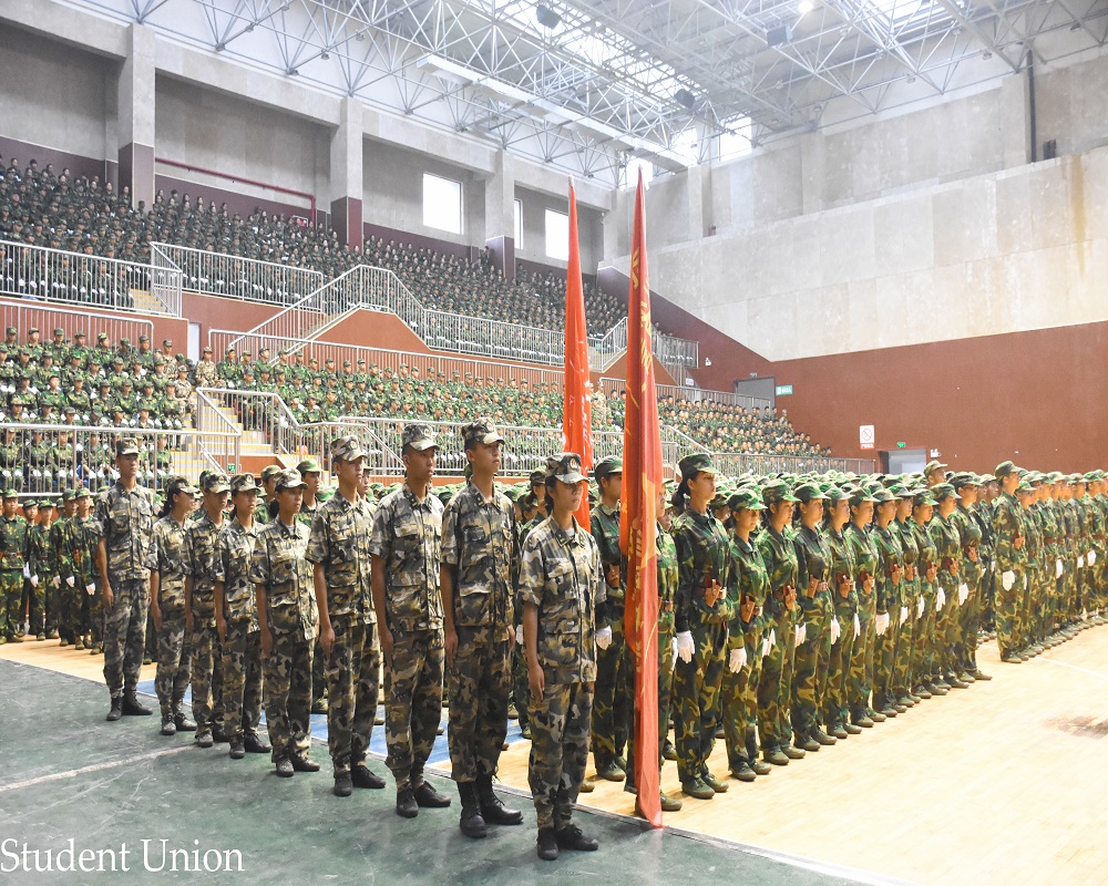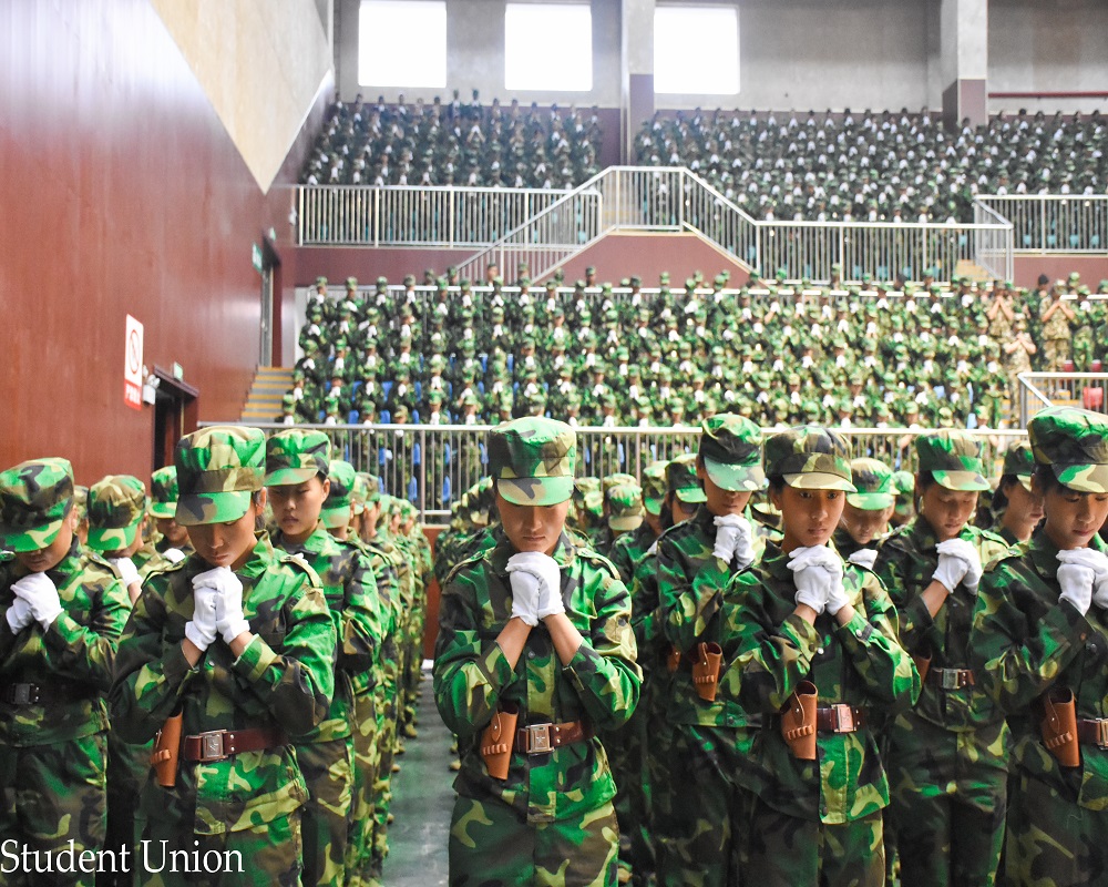 会议的第一部分是军训总结大会。首先,2016级全体新生奏唱了国歌,在庄严的国歌声后,16级新生代表发言,然后,军训团团长马小红作了军训工作总结。他说在领导们的支持鼓励下,教官们的严格训练下,同学们的坚持努力下,这次军训任务才得以圆满结束。本次军训工作有以下三个方面。一,合理安排,统筹兼顾。严格计划军训任务,保证军事训练和理论学习相结合。二,科学管理,确保安全。我校建立了学生军训考勤制度及哨兵执勤制度。三,以生为本,实事求是。本次军训过程中根据学校的实际情况安排了各种讲座,举办了军训联欢晚会,丰富了军训生活,马团长指出在本次军训中出现了很多同学不怕病痛,坚持训练的情况,这种永不言弃的精神为本次军训的圆满结束奠定了坚实的基础。此外,校长助理倪霞同志宣布了本次新生军训的表彰决定,表彰了本次军训中涌现出的先进集体和先进个人。她说通过本次军训提高了同学们的思想政治觉悟,激发了同学们的爱国热情,增强了组织性和纪律性。最后,优秀教官代表上台发言,总结了本次军训中出现的问题。