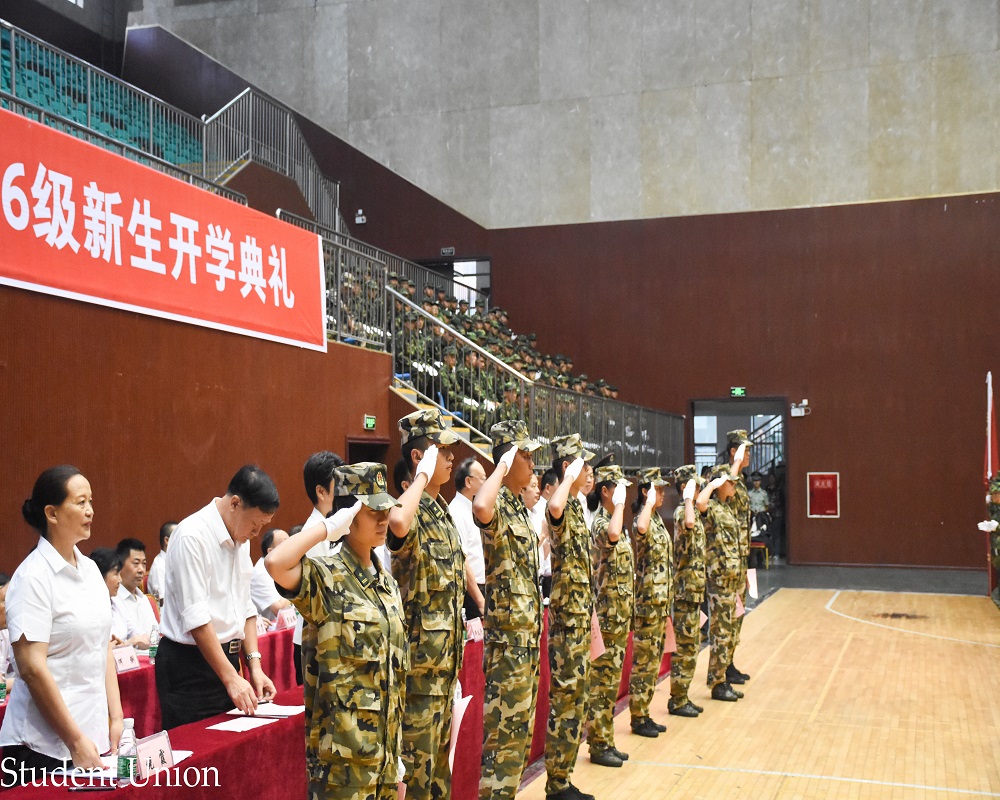 9月14日,我校在体育馆召开了2016级新生开学典礼暨军训总结大会。党委书记、校长唐健禾,副校长郭桂平,副校长宋代奇,副校长冯晓桦,副校长黄斯欣,校长助理倪霞 军训团团长马小红及各二级学院相关领导出席了会议。本次会议由党委副书记张进砂主持。