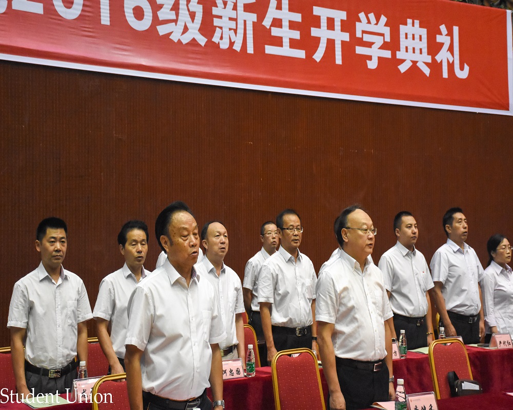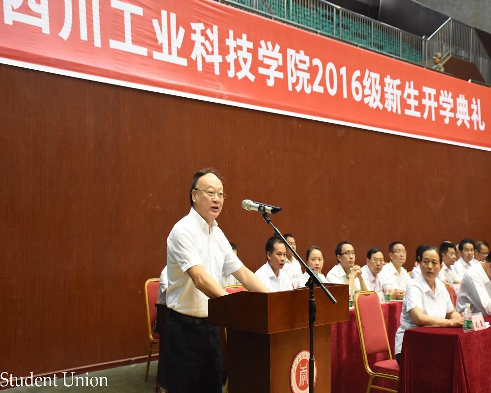 会议的第二部分是新生开学典礼。在校学生代表谢金成上台发言,用自己的经历给了新生们一些建议。随后,教师代表,财经学院院长卢淑梅发表讲话。她说要每位同学都要树立明确的目标,坚持勤奋踏实,才能不负青春,并且要学会思考,明白是非,积极面对挫折,在战胜挫折的过程中成长。党委书记、校长唐健禾作总结性发言,他首先代表全校教职工欢迎同学们的到来,并介绍了学校的基本概况,他告诫同学们在校期间要致力于学习,不要松懈,在课堂上获取知识,在学校各种活动中获取见识,开阔视野,打开心胸,培养独立思考的能力,增强人际交往能力,学会认识自我,要有创新意识。他说在大学里我们要不断突破自己,争取让自己的青春无悔。最后,2016级全体新生为大家带来《感恩的心》手语表演。