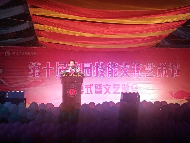 技能是立业之基,文化是立人之本。2016年11月17日晚,伴随着浓郁的技能文化之风,我校第十届技能文化节缓缓拉下帷幕。下午6:30,第十届技能文化节闭幕式在四川工业科技学院绵竹校区隆重举办。出席本次闭幕式活动的领导有党委书记校长唐健禾同志,党委副书记张进砂,副校长冯晓桦,副校长黄斯欣,校长助理倪霞,各二级学院领导及我校全体师生参加了本次活动。
