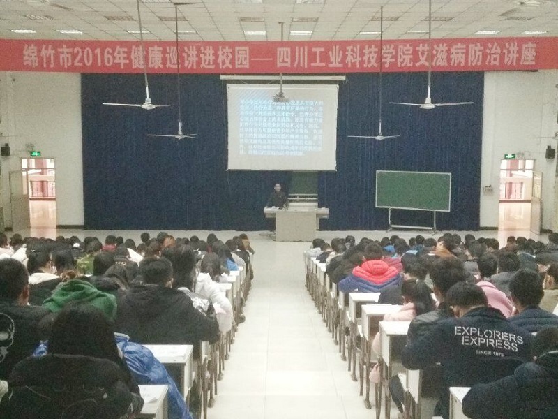 下午4点,我校学工部分别邀请了绵竹市疾控中心主治医师、全国健康巡讲专家陈刚和罗江县疾控中心防艾科科长彭茹医生同时在绵竹校区和罗江校区对我校500余名学生进行了两场防艾知识专题讲座。讲座中两位医生用生动的语言讲解了艾滋病的发现及流行情况、艾滋病的病原学、艾滋病的传播及预防和我国艾滋病防治的有关政策与措施等内容,并在讲课中穿插了大量的与青年学生有关的案例,现场气氛十分活跃。校学生会新媒体中心还进行了微信平台现场直播,通过直播平台可以让没能到达现场的同学在场外通过微信平台收看现场讲座视频。