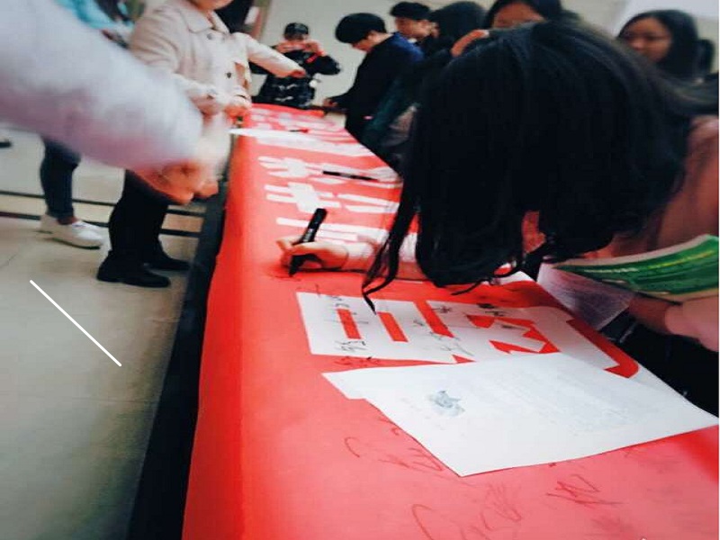 “第29个世界艾滋病日”12月1日上午10时,在绵竹校区教学楼大厅举行了预防艾滋宣传活动,发放一系列预防艾滋病宣传资料并为师生们佩戴红丝带。随后,师生们纷纷在防艾横幅上签名,表达对艾滋病人的关怀与支持,表达自己远离艾滋、珍爱生命的承诺。