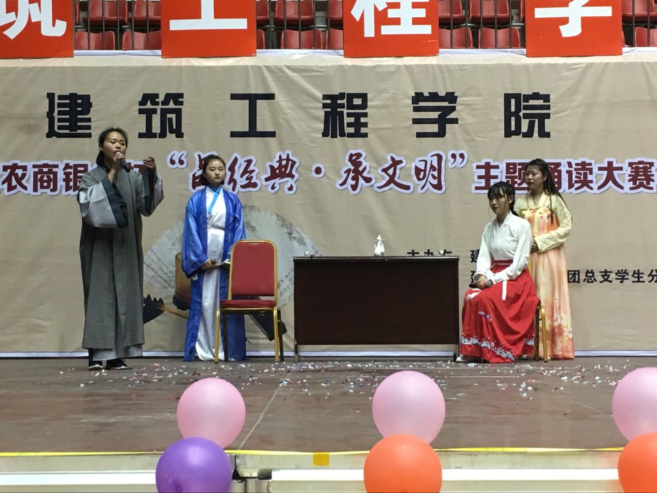 2017年3月26日,由四川工业科技学院建筑工程学院主办,建工学院团总支学生分会承办,罗江农商银行协办的“品经典·承文明”主题朗诵大赛在我校体育馆顺利举行。党委书记、校长唐健禾教授、建筑工程学院院长罗运辉、学工部副部长胡亮、图书馆馆长廖洪清、及各二级学院老师代表出席活动。此次大赛由学生处综合科科长根秋拉姆、大学生艺术团副团长张彬老师、心理健康教育中心副主任蔡林老师、建筑工程学院蔡明老师、团委罗岚兰老师担任评委。