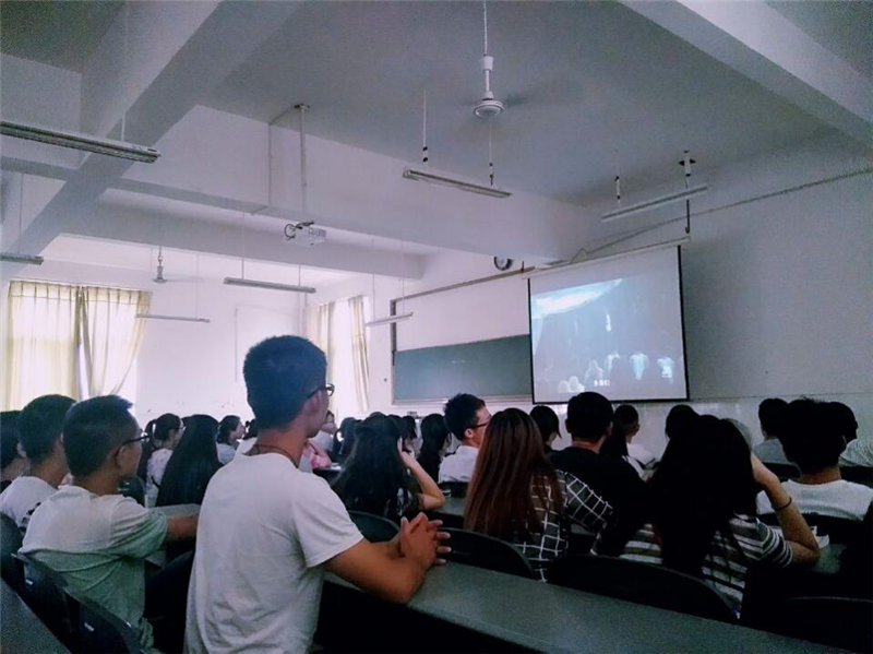 在整个观看影片的过程中,环境安静,无人吵闹。同学们都保持着良好的纪律。情节波澜起伏时,他们表情丰富,可以感受到他们内心的震撼,直至影片放映结束时,他们也是保持着良好的纪律,井然有序的离场。