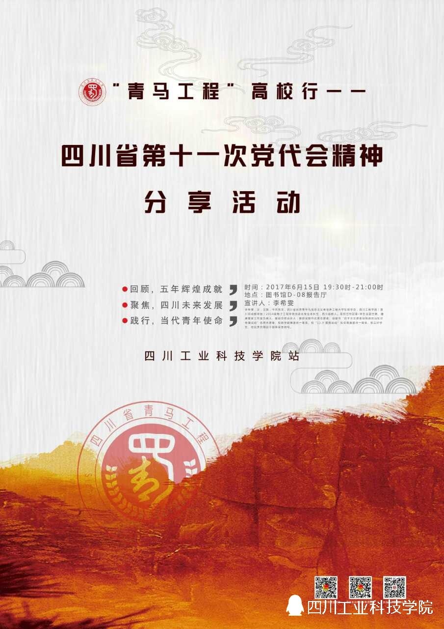组织我省“十三五”人才发展规划重点工程——“四川省优秀青年马克思主义者培训工程”(简称“青马工程”)第一届大学生班学员走进高校,与青年学生就学习省第十一次党代会精神进行分享,帮助青年学生深入了解过去五年全省各项事业取得的重大成就,深刻领会未来五年全省经济社会发展的重大部署,激励青年学生积极投身治蜀兴川伟大实践,为谱写“中国梦”四川篇章而努力奋斗。