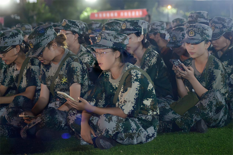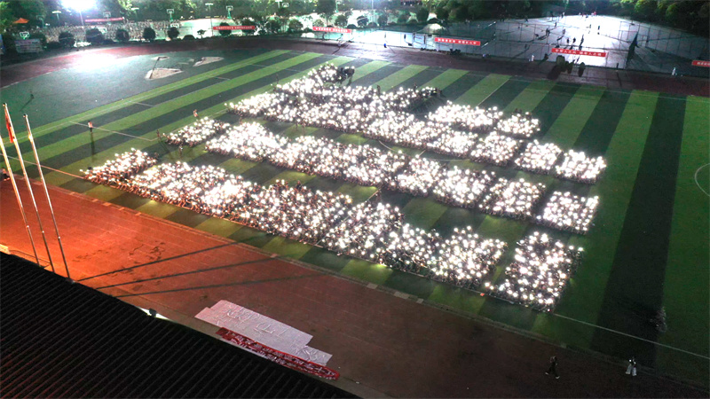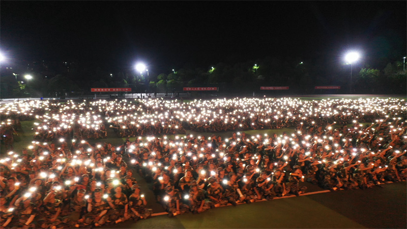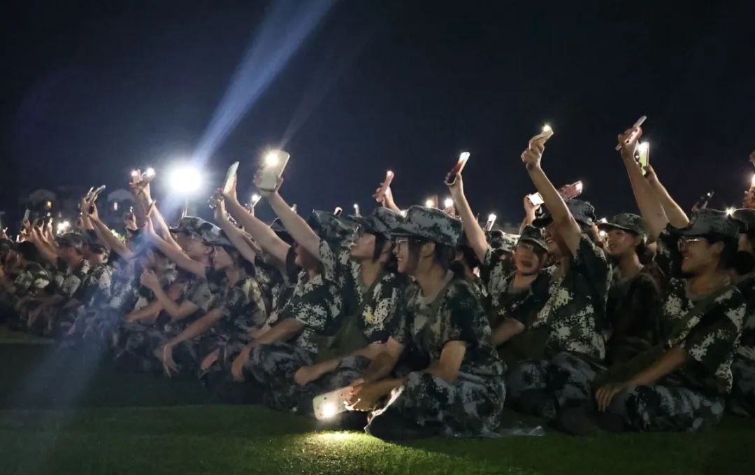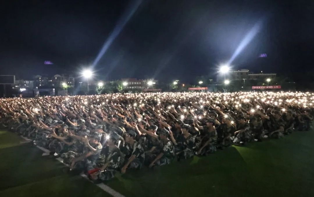 在所有表演开始前,全体军训新生齐声合唱《祖国不会忘记》,并打开手机闪光灯,随着音乐节奏摇晃,瞬间点亮了全场。田径场沉浸在浓厚的爱国情怀中,场面震撼人心。