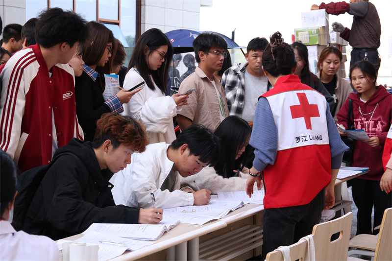 红十字会工作人员向同学们详细介绍了献血液、献造血干细胞、献人体器官组织的“三献”知识,通过讲解消除同学们对捐献造血干细胞的认识误区,鼓励同学们积极加入中华骨髓库,为万千血液病患者点亮生命之光,传递爱的温暖。随后工作人员详细讲解了造血干细胞捐献的流程,并耐心解答同学们的疑问。讲座结束后,罗江区红十字会设置捐献造血干细胞登记采集点,学校志愿者协助红十字会工作人员开展造血干细胞宣传、登记和采集工作,同学们积极响应、踊跃报名,用实际行动诠释工科学子的责任与担当。