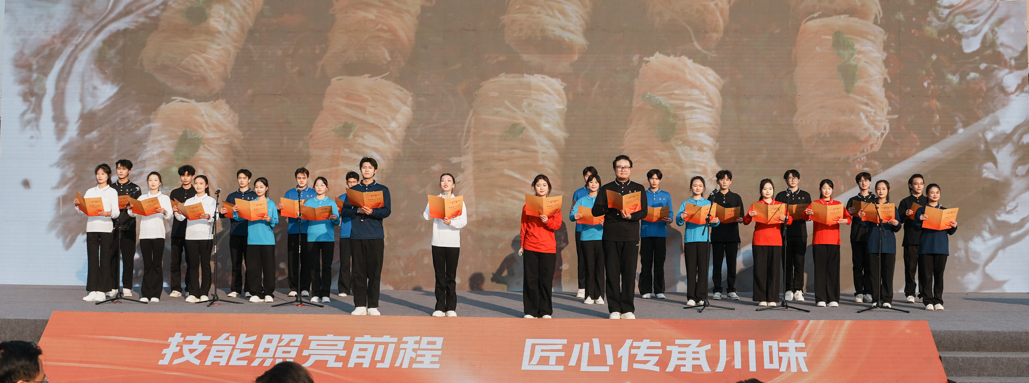 烟火罗江,匠心川味。11月19日下午,以“技能照亮前程 匠心传承川味”为主题的四川省第一届川菜职业技能竞赛在德阳市罗江区圆满落幕。在闭幕式现场,四川工业科技学院学子深情演绎的诗歌朗诵《职教魂 川菜香》,为这场技能盛会注入了动人的青春力量,成为闭幕式上一道亮丽的风景。