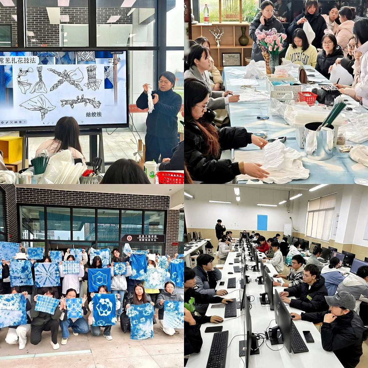 信息工程学院兼顾传统技艺与专业实践,推出“染布生花,缝物成趣”扎染制作活动、“匠心筑梦,创意传承”文创产品创意设计大赛及“‘绘’筑未来:CAD绘制大赛”。近100名同学在扎染活动中学习传统技艺,融入现代设计理念创作非遗作品;300名同学参与文创设计大赛,从地域文化、校园精神中汲取灵感,设计特色IP、农产品包装等多元作品;CAD绘制大赛上,40名选手精准完成建筑、机械类图纸绘制,以赛促练提升专业实践能力。