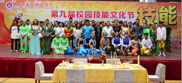 颁奖仪式后,由各学院带来了精彩的文艺演出,建筑工程学院表演的非洲风韵的草裙舞《waka waka》拉开了演出序幕,动感的节奏,整齐的动作,诙谐的舞姿呈现出一种和谐之美,赢得台下观众阵阵掌声。旅游学院的技能表演《礼仪展示》,表演者举止优雅、仪态大方,犹如蒙娜丽莎的微笑成为现场一道醉人的风景线,把演出又推向了一个新的高潮。银杉特训队表演的男子群舞《银杉风采》为本次文化节闭幕式划上了圆满句号。