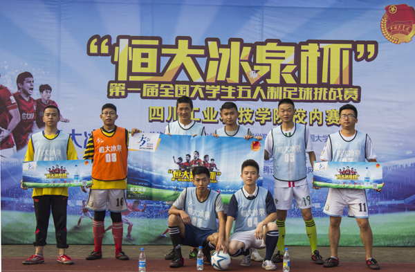 新闻链接:本届“恒大冰泉杯”全国大学生五人制足球挑战赛由共青团中央学校部、全国学联秘书处、中国大学生体育协会、恒大矿泉水集团主办,面向正式注册的普通高等院校和体育大学(学院、系)非体育(运动)专业以及参加全国统一高考正常录取,并未享受任何体育加分政策的学生。活动分为五人制足球赛、啦啦操大赛和足球文化微创意大赛三个单元,五人制足球赛分为校内赛、片区赛、集训营、全国赛四个阶段,其中校内赛、片区赛由各高校申请承办,集训营及全国赛由组委会统一组织实施。赛事在全国100所高校开展,全国划分为五大赛区,每个赛区20所高校,西赛区包括:重庆、甘肃、青海、宁夏、新疆(含兵团)、四川、西藏七省市。经报名申报,四川工业科技学院获批承办第一届“恒大冰泉杯”全国大学生五人制足球挑战赛校内赛。
