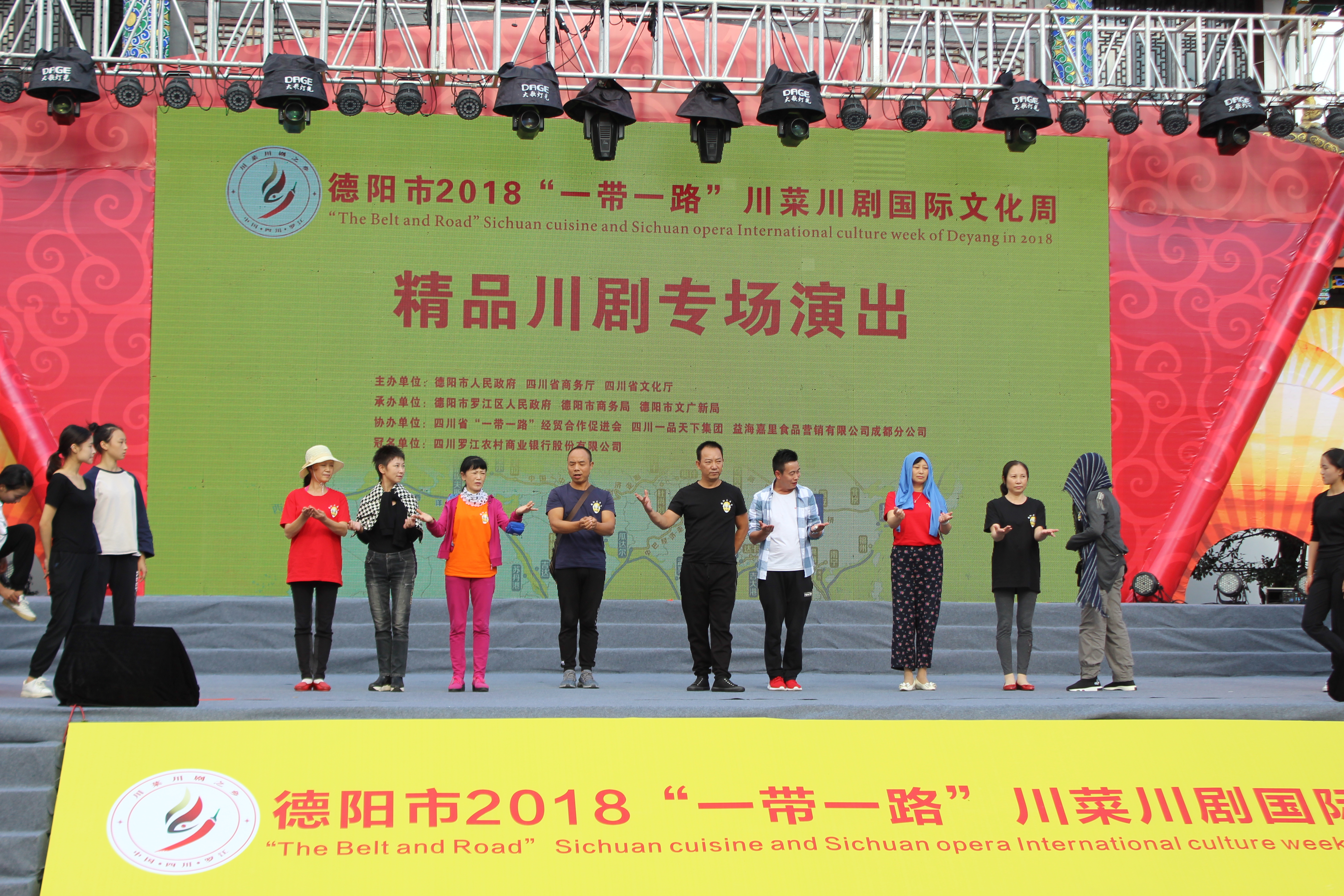 9月26日14:30,由四川省商务厅、四川省文化局、德阳市人民政府主办、德阳市商务局、德阳市文广新局、德阳市罗江区人民政府承办的德阳市2018“一带一路”川菜川剧国际文化周第一次彩排在罗江县水城古戏台隆重开幕。其中德阳市川剧团、众多国家一、二级演员以及四川艺术职业学院学生代表团参与了此次彩排。同时,我校也有数十名学生踊跃参加了本次志愿者活动。