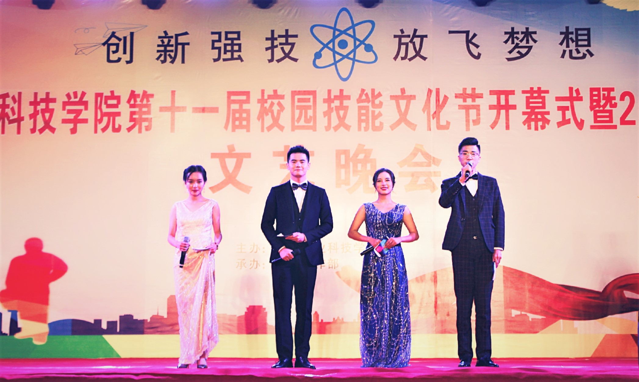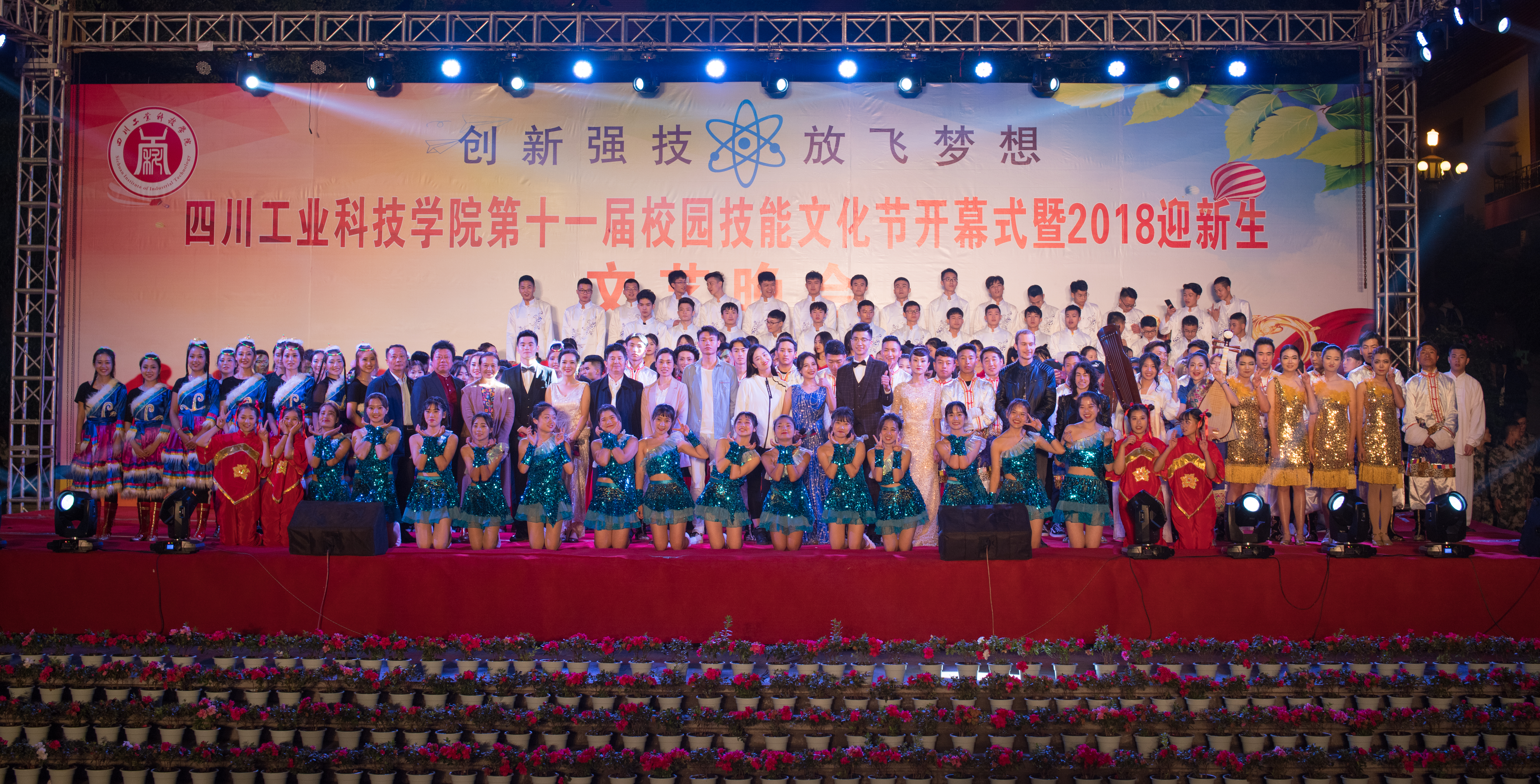 19:20,随着魏崛书记一声“四川工业科技学院校园技能文化节暨2018迎新生文艺晚会开幕”,在光芒四射的烟火和激情奔放的“鼓舞青春”中晚会正式开始。整台晚会包括“活力工科”、“多彩工科”、“奋进工科”和“筑梦工科”四个篇章,其形式有舞蹈、小品、歌伴舞、配乐诗朗诵和器乐表演等,精彩纷呈的晚会节目让人目不暇接。展现了新兴的四川工科学院“多民族团结、多学科交叉、多国家合作”的开放式办学的格局和异彩纷呈的校园文化,抒发了年轻的川工科学院在学校党政的正确领导下,朝气蓬勃、齐心协力地朝着既定的目标扬帆起航、共筑中国梦的豪情壮志。
