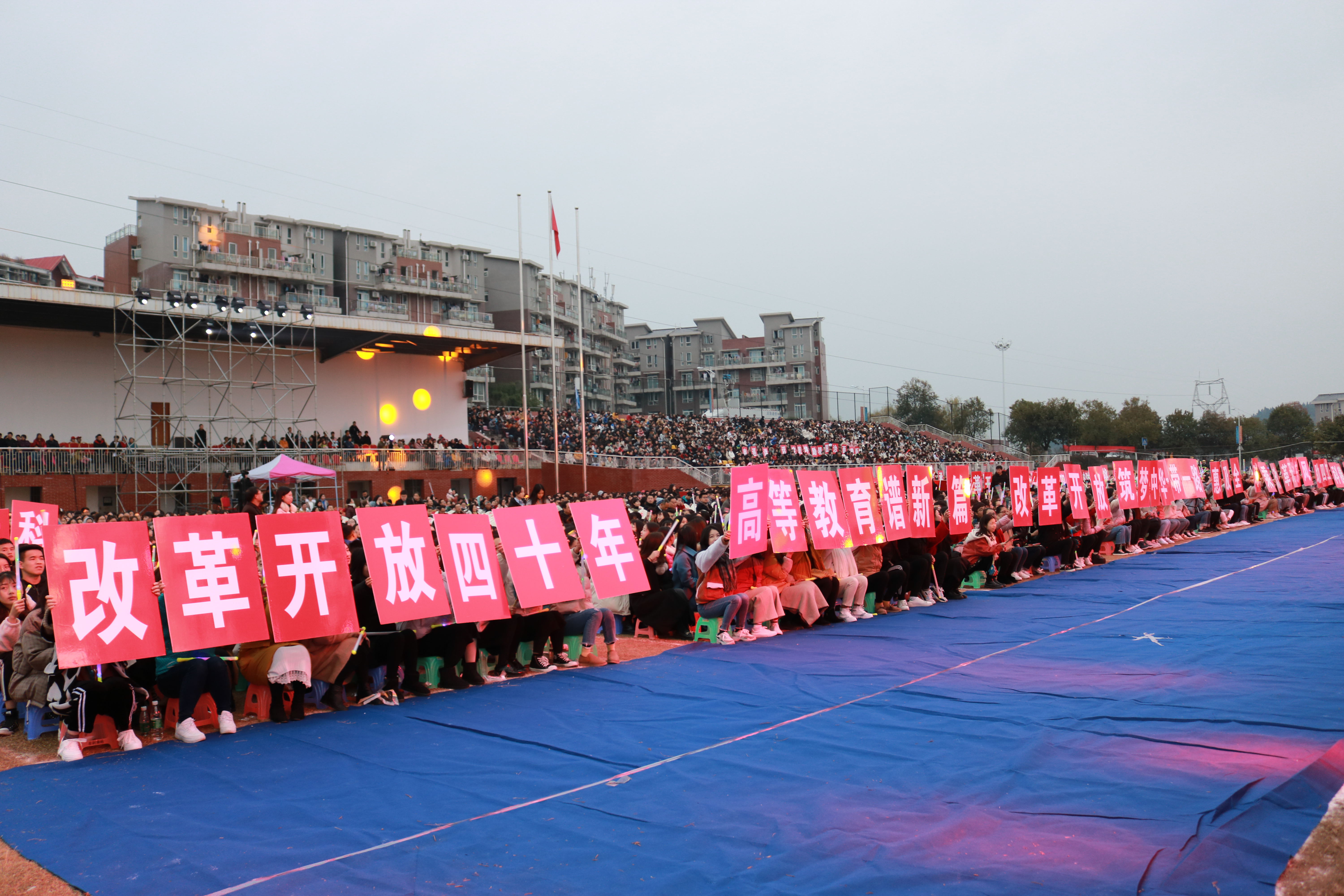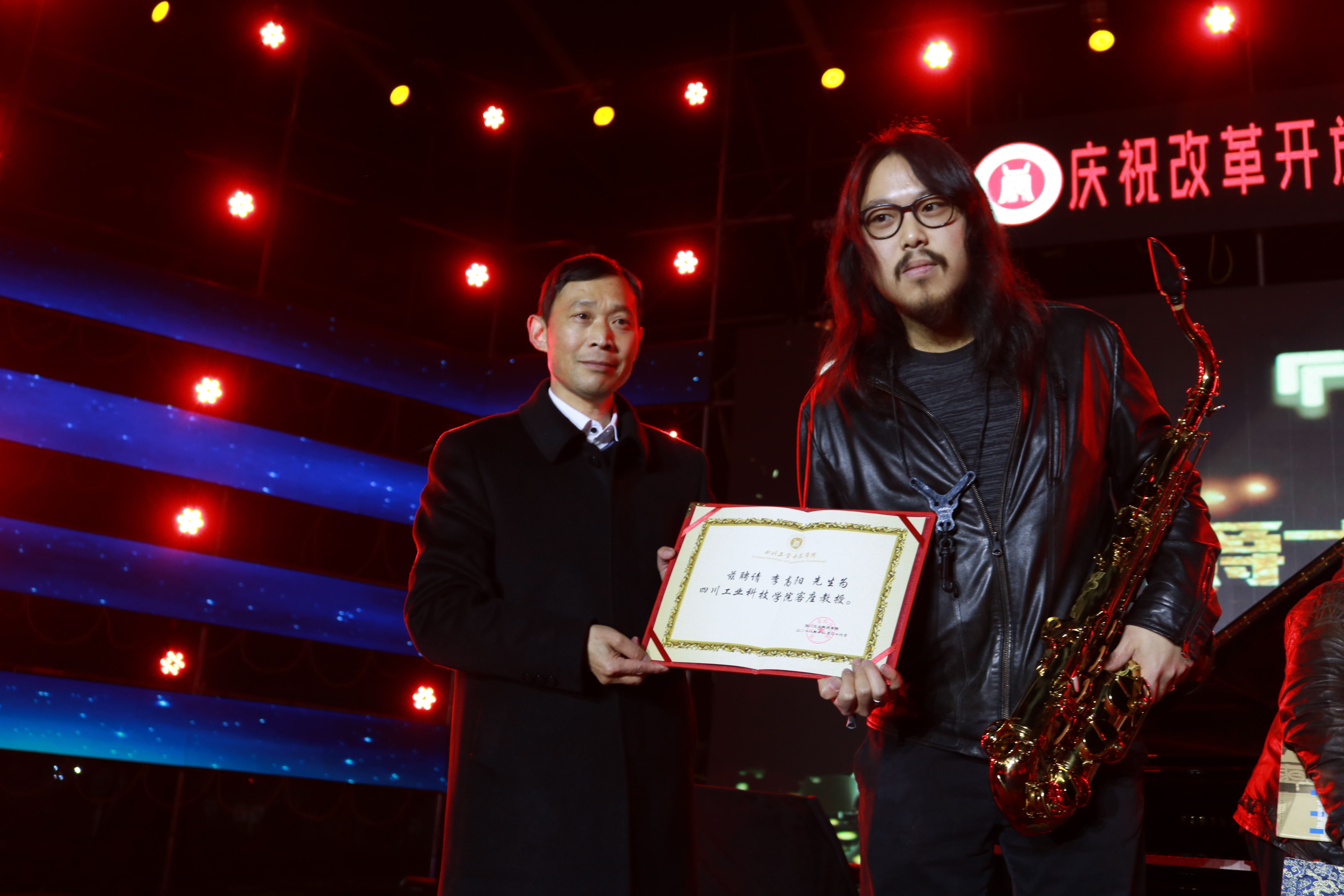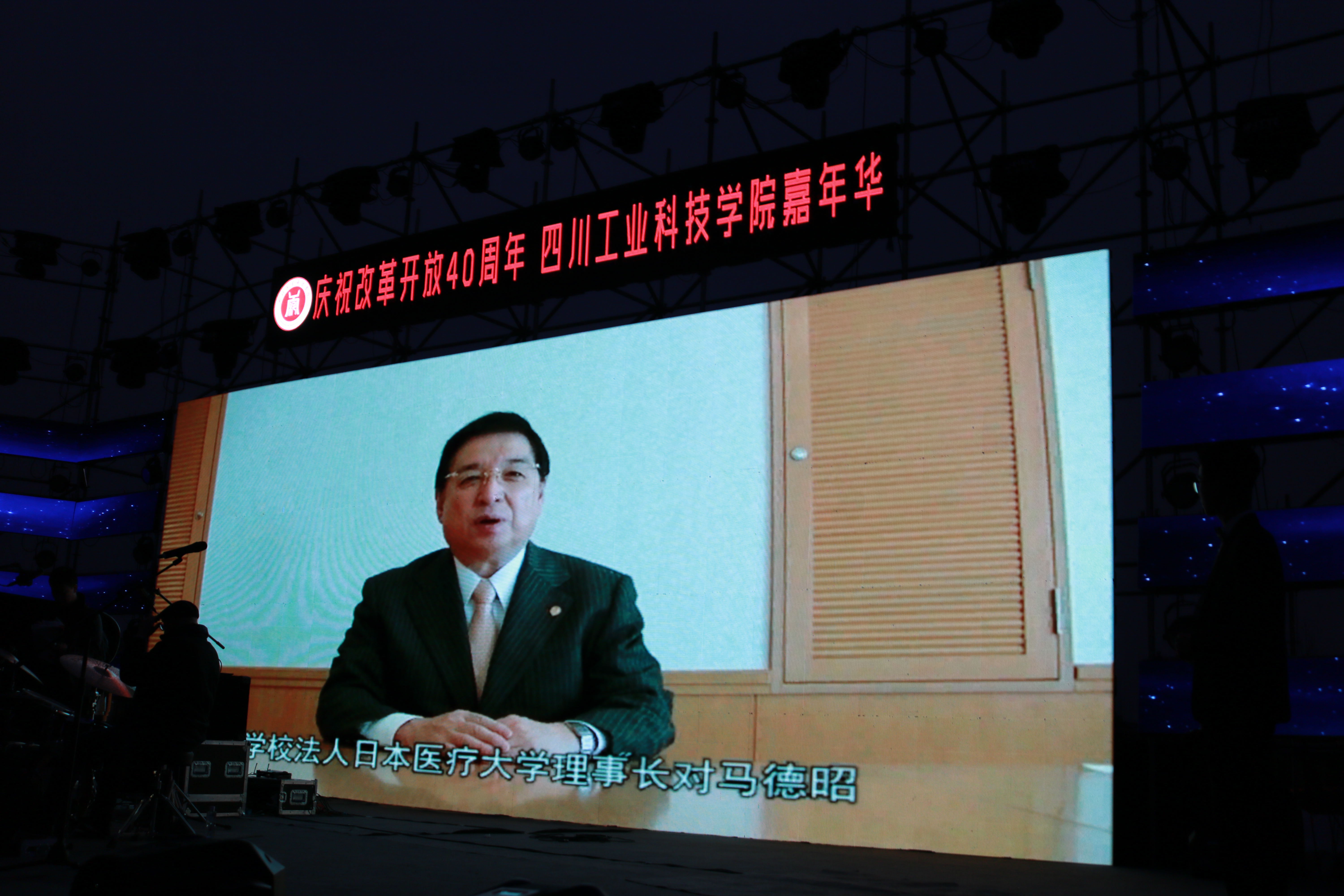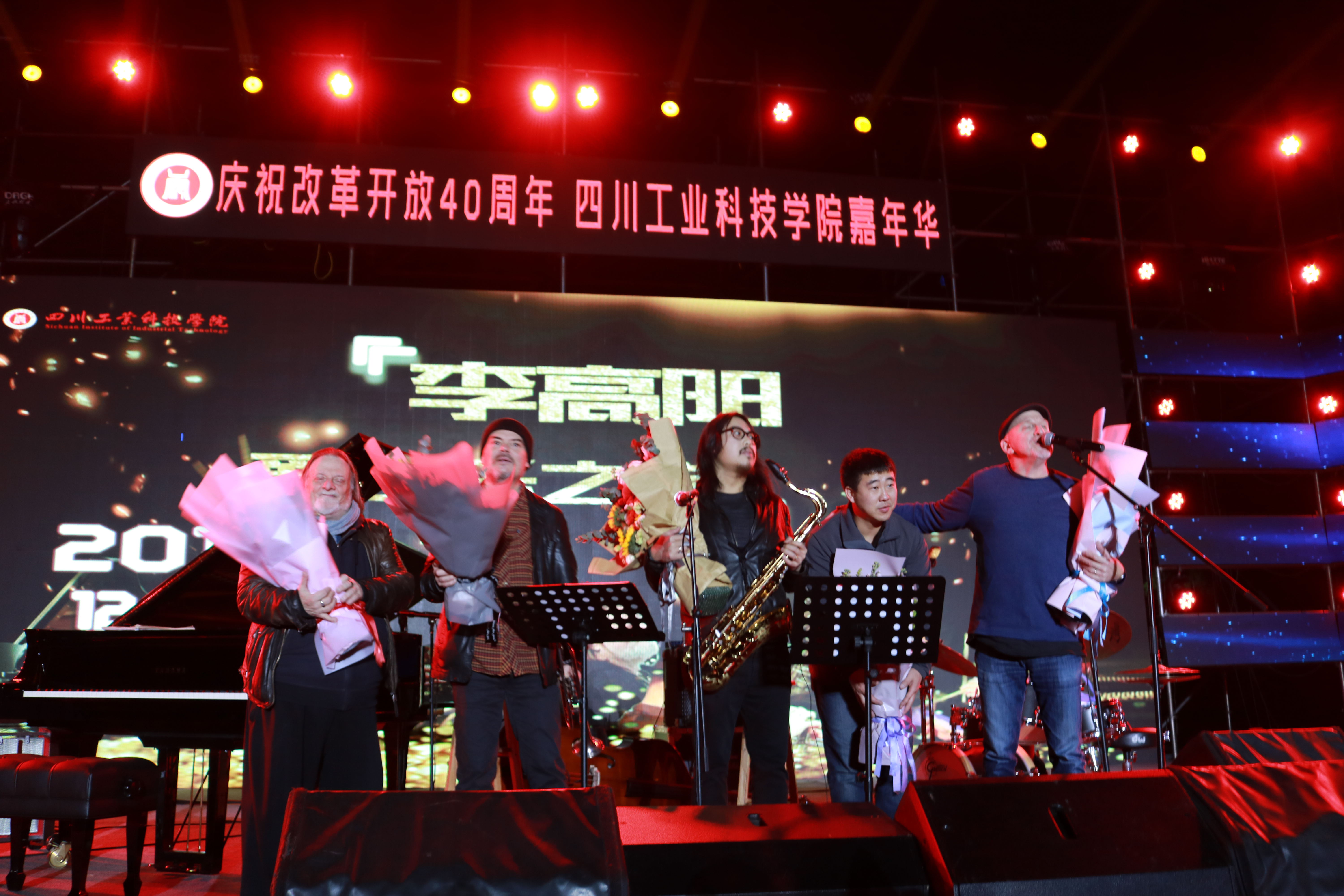 11月26日,为庆祝改革开放40周年,我校在操场隆重举行了庆祝改革开放40周年'四川工业科技学院嘉年华——李高阳爵士乐之夜”音乐会。香港大文传媒集团副董事长兼总编辑李大宏、国务院《今日中国》杂志社副总编辑庹泓、国家督学、原省委教育工委书记、省教育厅厅长涂文涛、省教育厅党组成员、机关党委书记李志刚、新华社四川分社常务副总编辑蒋作平、省公安厅原刑侦局局长孙建明、康年国际酒店集团执行董事连振成、香港大公网四川营运总监陈明、省教育厅体卫艺处主任科员陈佩君、剑南春森林酒店总经理乔俊、德阳市市委宣传部副部长董明、我校党委书记魏崛、校长张小南及罗江校区相关领导出席晚会现场,四川工业科技学院全体师生到场观摩。