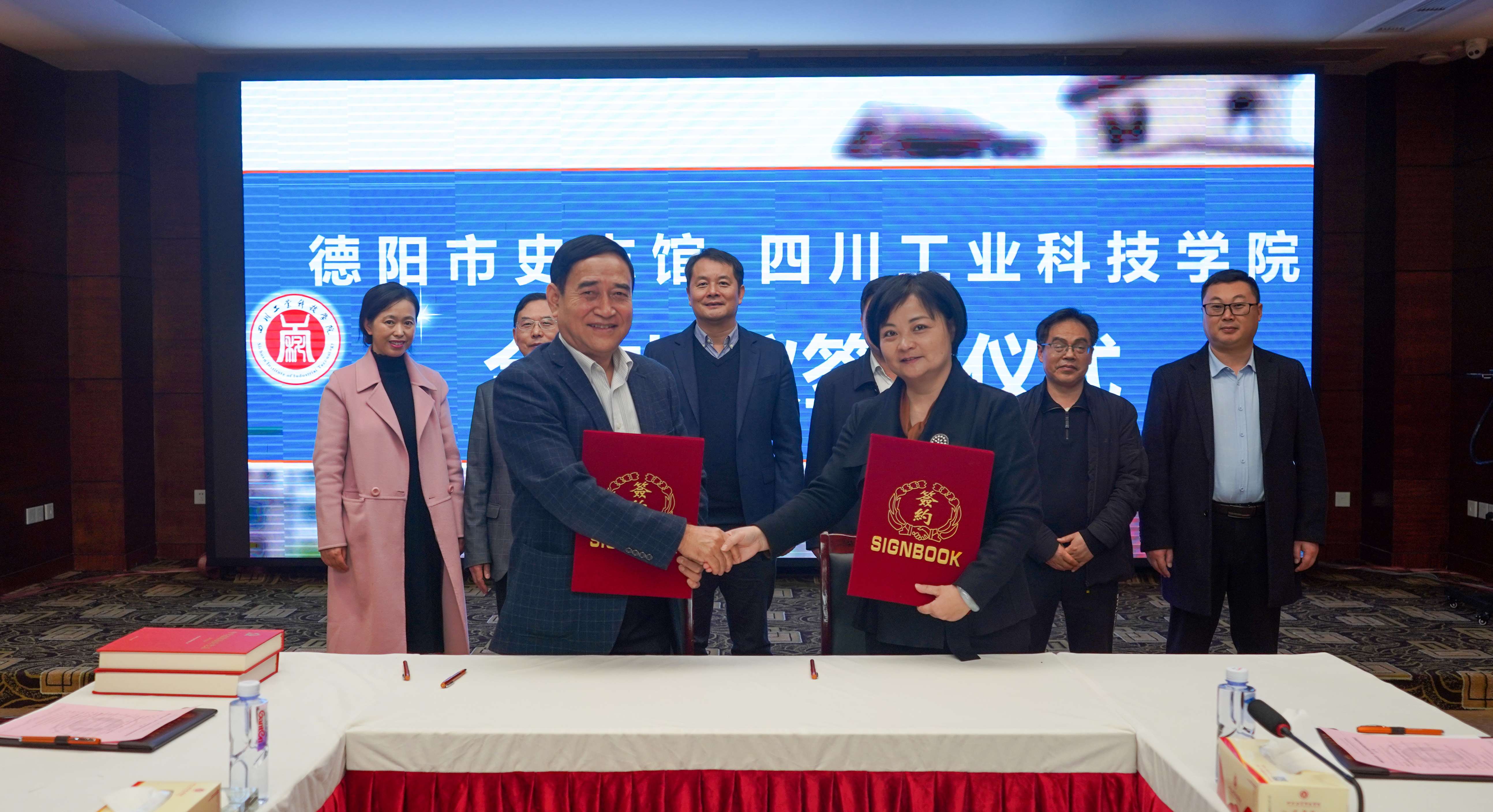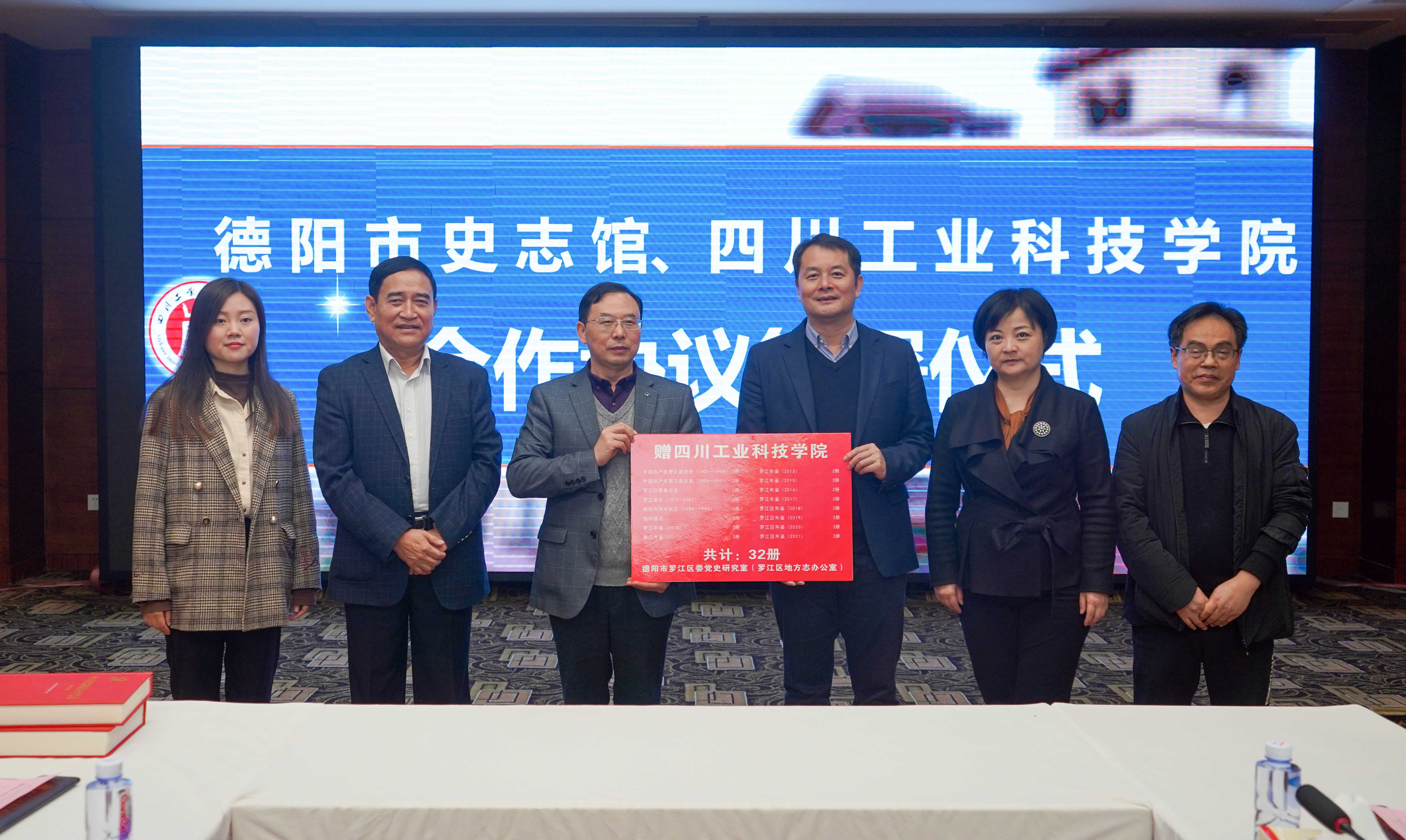 双方签订了合作框架协议。中共德阳市委党史研究室(德阳市地方志办公室)主任杨兆红向学校授予“德阳市史志馆四川工业科技学院分馆”牌匾。杨兆红主任、温剑锋副书记分别代表中共德阳市委党史研究室(德阳市地方志办公室)和罗江区委党史研究室向学校捐赠了志史图书。