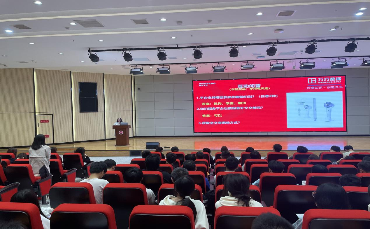 师生对本次讲座内容展现出了莫大的兴趣,不仅在讲座进行过程中与万方数据培训讲师积极互动、提问,还有几位同学在讲座结束后留下单独咨询讲师数据库的相关问题。万方数据培训讲师也对所提出的问题进行了耐心细致地回答,为本次讲座的开展画上了完美的句号。