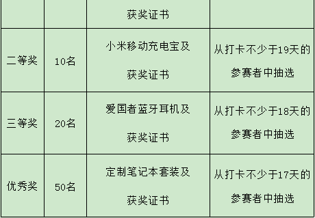 3.团体奖项将以各单位组织的所有参与人员的打卡总天数为主要依据进行线下评选。