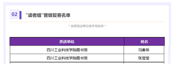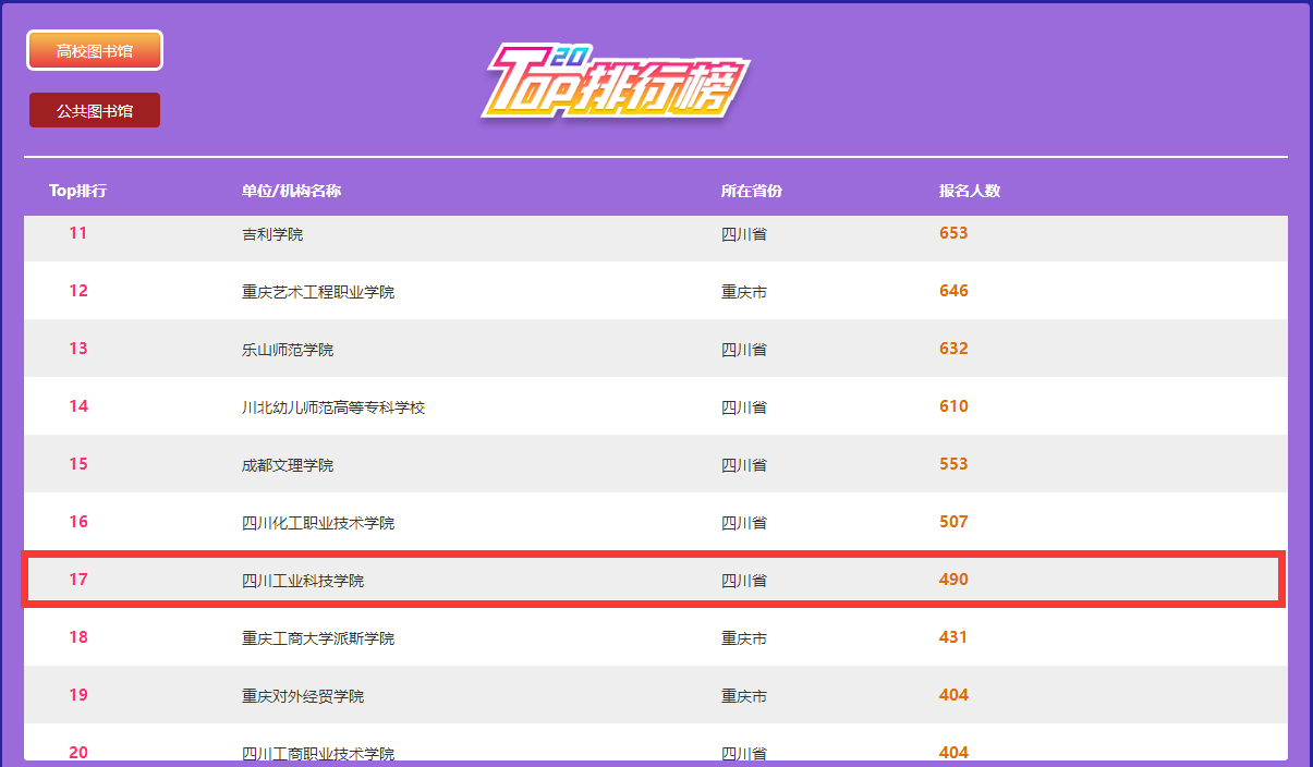“网络初赛”历时一个月,共吸引川渝地区296所图书馆参与组织赛事,35949名选手报名参赛。我校图情与网络电教中心就活动前期宣传、动员参与、报名参赛等工作进行周密布置,共有490名同学参加初赛,在高校报名人数中排名第17位。经过初赛激烈角逐,我校学子——电子信息与计算机工程学院冯秦希和教育学院张莹莹晋级复赛。
