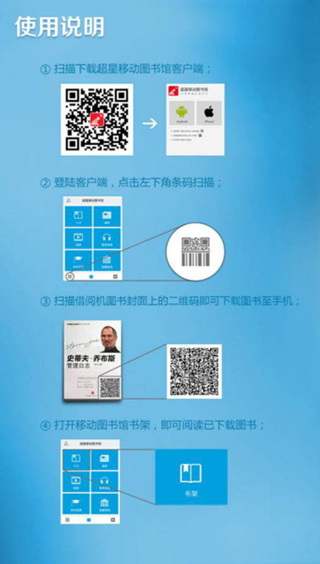绵竹校区图书馆即日起开通歌德电子借阅机服务。电子书借阅机安装在图书馆一楼大厅,预装了2000种独家授权的正版图书,内容涵盖精品推荐、经典名著、生活保健、经管理财、成功励志、小说传记、政史军事、文学艺术、科学技术、社会法律、哲学宗教、亲子育儿等,图书与出版社纸书同步发行,每月更新100本电子图书。电子书借阅机通过多点触控进行操作,支持滑动、拖动等手势。 读者只要用手指轻轻地触碰显示屏上的图片就能实现对主机的操作,读者扫描二维码下载并安装超星移动图书馆客户端后,只需在电子书借阅机屏幕上选择心仪图书,扫描图书封面二维码,便可将该书下载至手机,免费体验高清电子阅读。