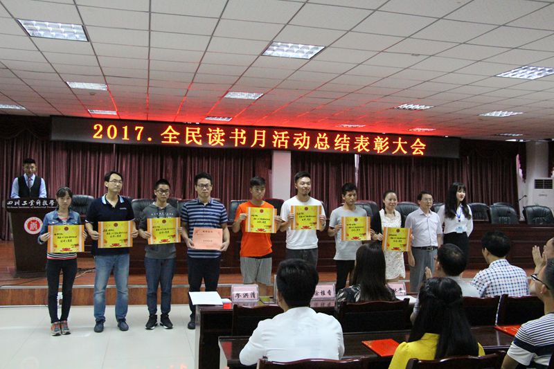 科技处处长、图书馆馆长廖洪清对2017·全民读书月活动开展作了总结报告。在学校党委、行政的领导下,在学校二级学院、相关部门的支持配合下,图书馆从4月到5月组织开展了诗词大会、中华经典诗文朗诵大赛、书香校园征文等系列读书主题活动,对促进学校全民阅读良好风气的形成,建设书香校园,起到了积极的推动作用,有力促进了我校内涵建设发展。