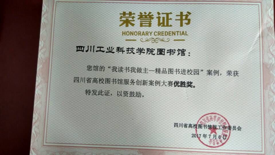 近日,学校图书馆开展的“我读书我做主——精品图书进校园”活动,荣获四川省高校图书馆服务创新案例大赛优胜奖。