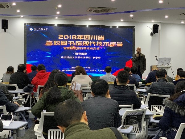 由四川省高校图工委技术专委会主办、电子科技大学图书馆协办的“2018年四川省高校图书馆现代技术年会”于2018年11月16日在电子科大图书馆召开,来自全省的31所高校图书馆60余名业内同行代表参加了此次会议。会议开幕由电子科技大学图书馆馆长杜丽主持,电子科技大学图书馆书记李泰峰对会议进行了致辞。